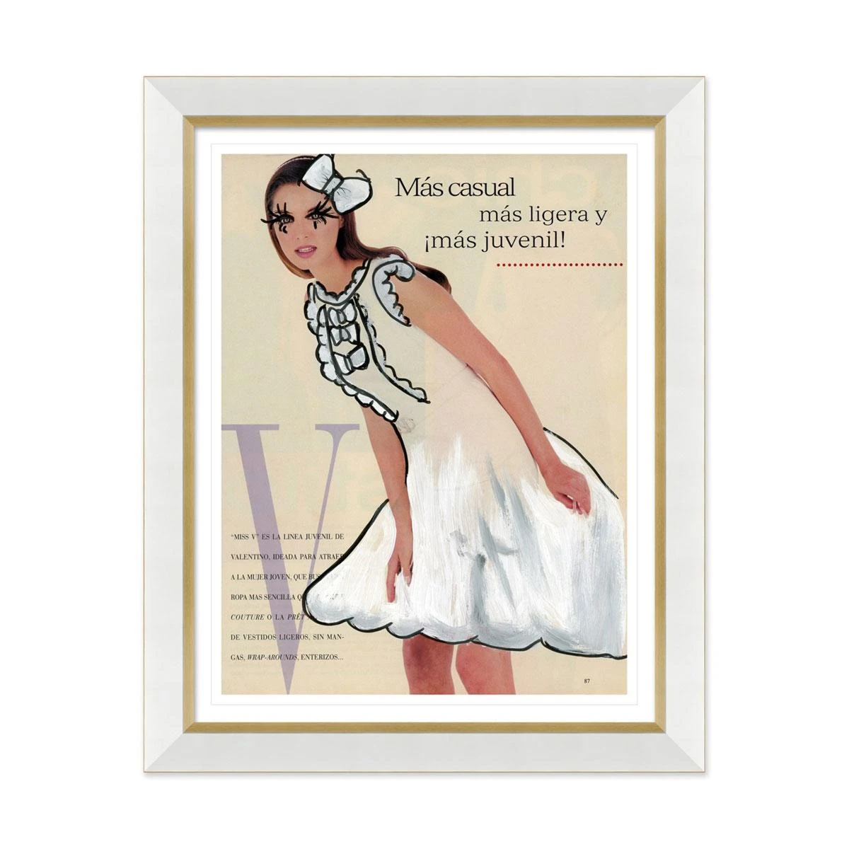 Giclรฉe print on archival paper matted in a white and gold frame.