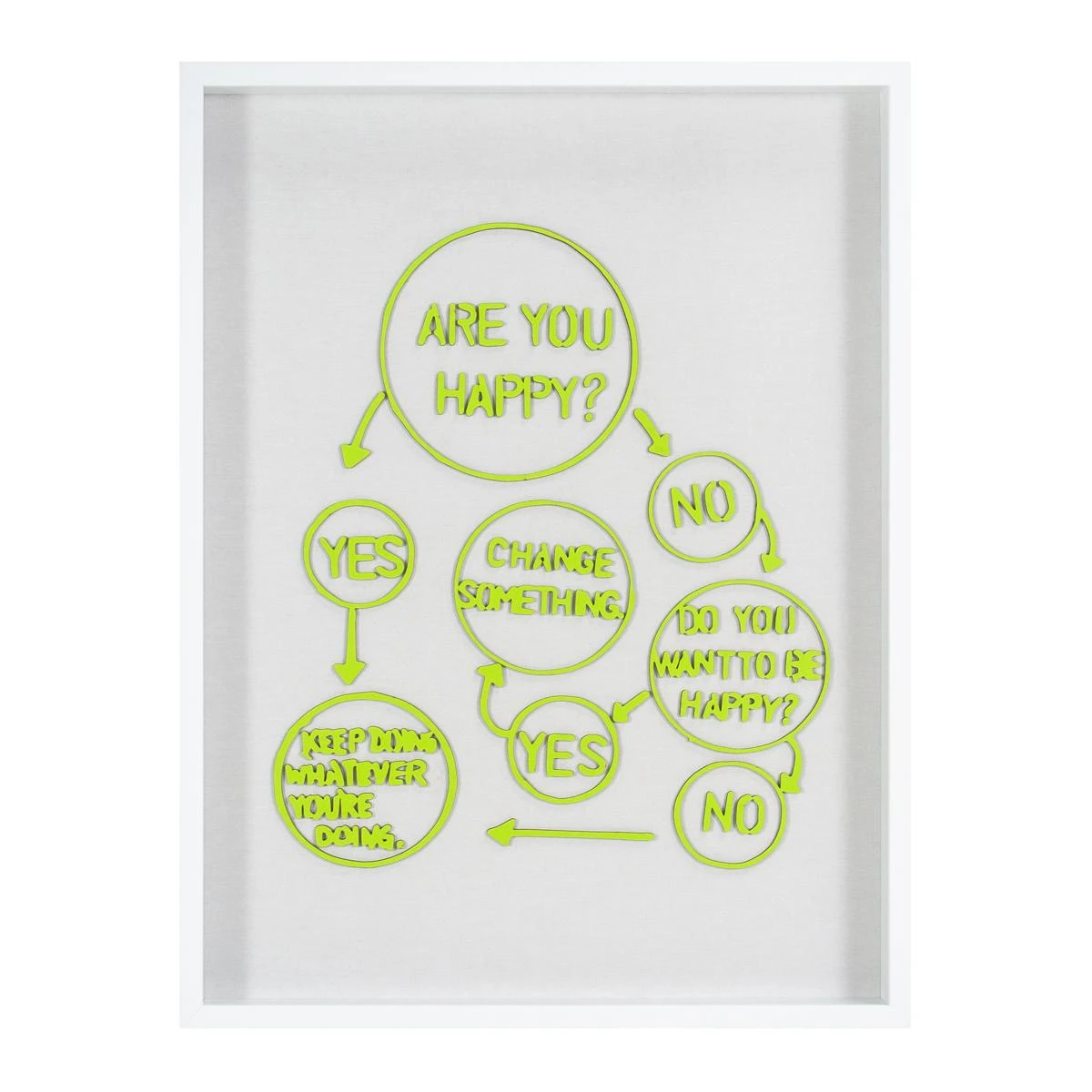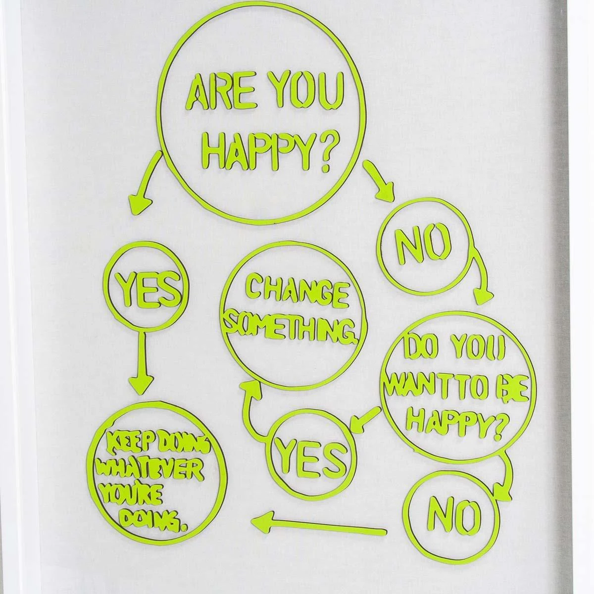 You’re welcome. The easiest life map that we ALL need to follow. Lesson to learn – BE HAPPY. Laser cut pieces are placed on canvas and framed in a white wood frame.ย ย