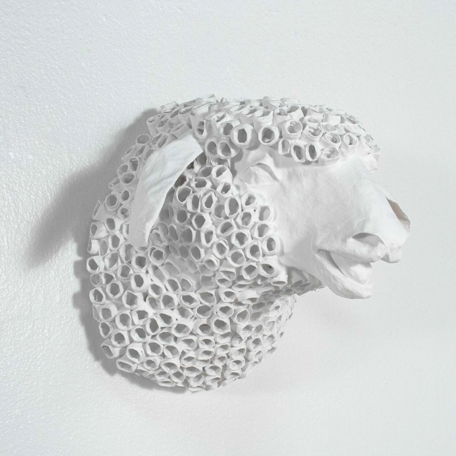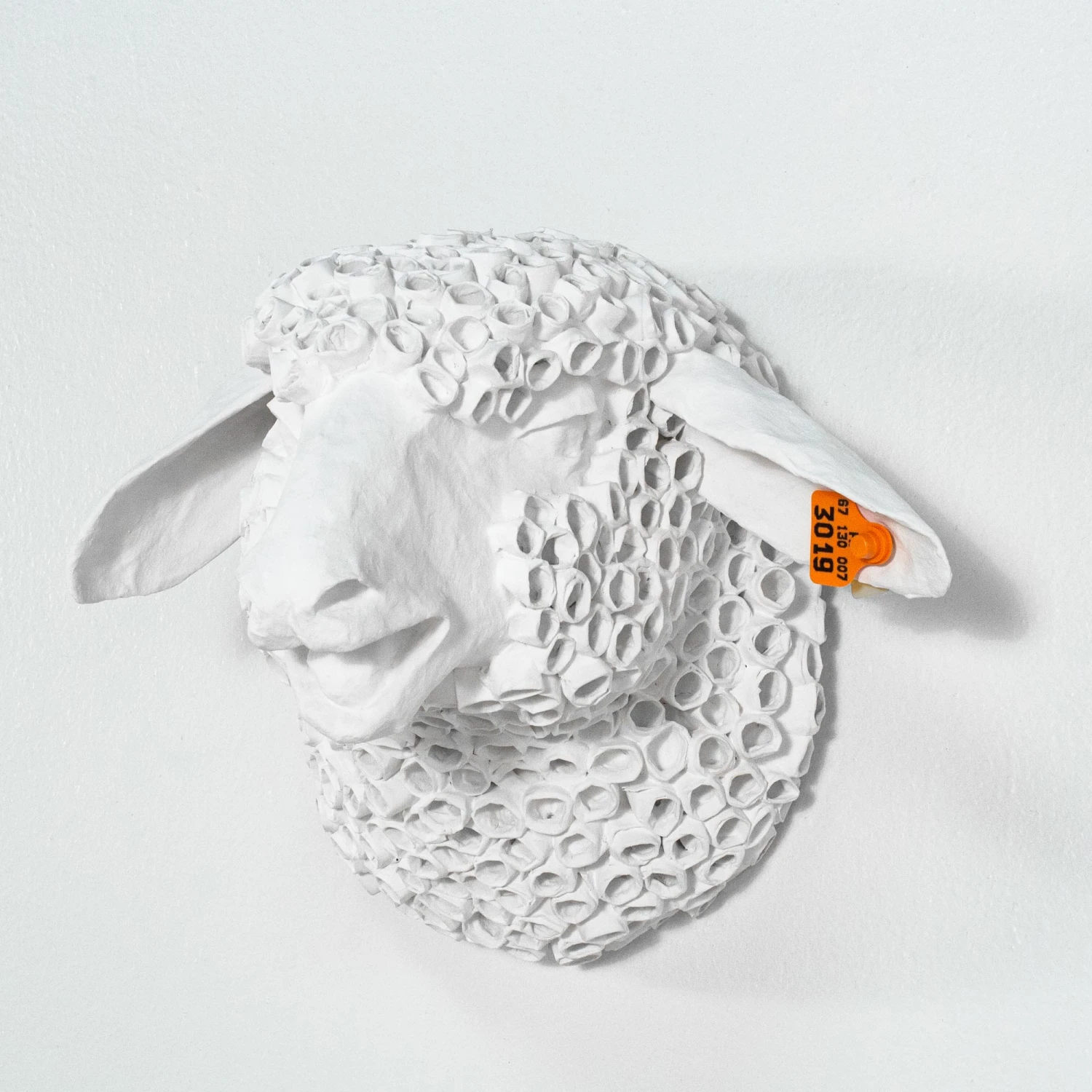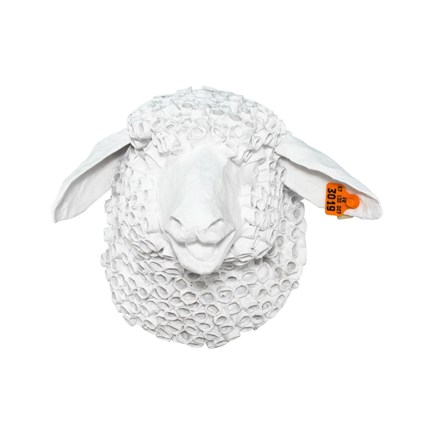Paper mache animal wall mount art by French artist Marie Talalaeff. Bigoudi the sheep will have all your friends raving.