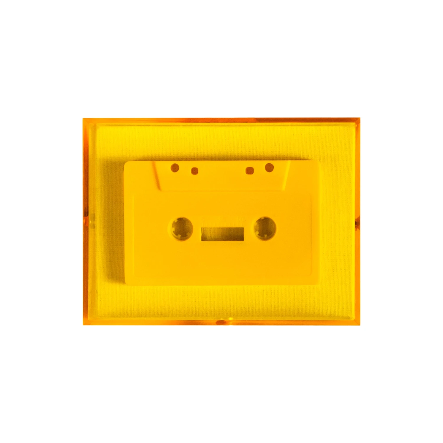 Created by Tat Frederick, this piece features a yellow cassette tape fixed to canvas and framed in an acrylic shadowbox. Includes hanging hardware on the back. Browse the entire Rainbow Cassette Collection here.