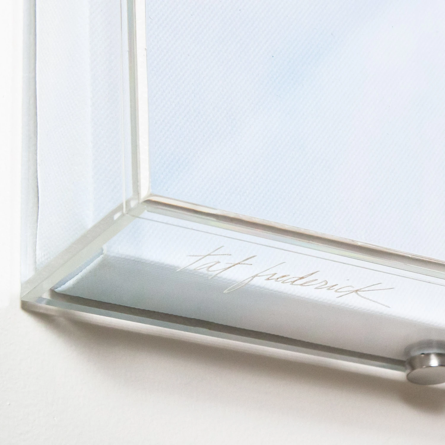 A new design by Tat Frederick!ย “Clocks Tickin’ Start Livin”ย made out ofย shaved crayon and fixedย to a painted cloud-like canvas and framed in an acrylic shadowbox.ย