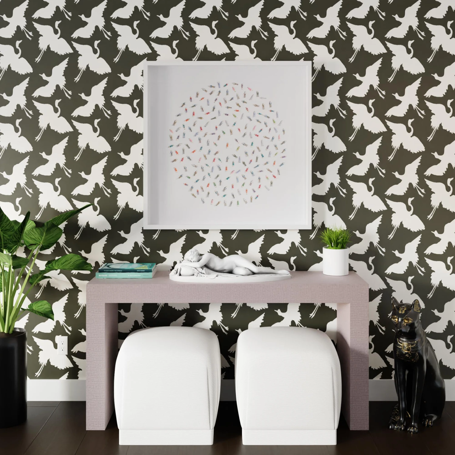 Two is better than one. The Cranes Couple Wallpaper features two birds in flight for a print that has us flying high. Mitchell Black wallpaper designed exclusively for Scout Design Studio. Every order is custom printed for color consistency.