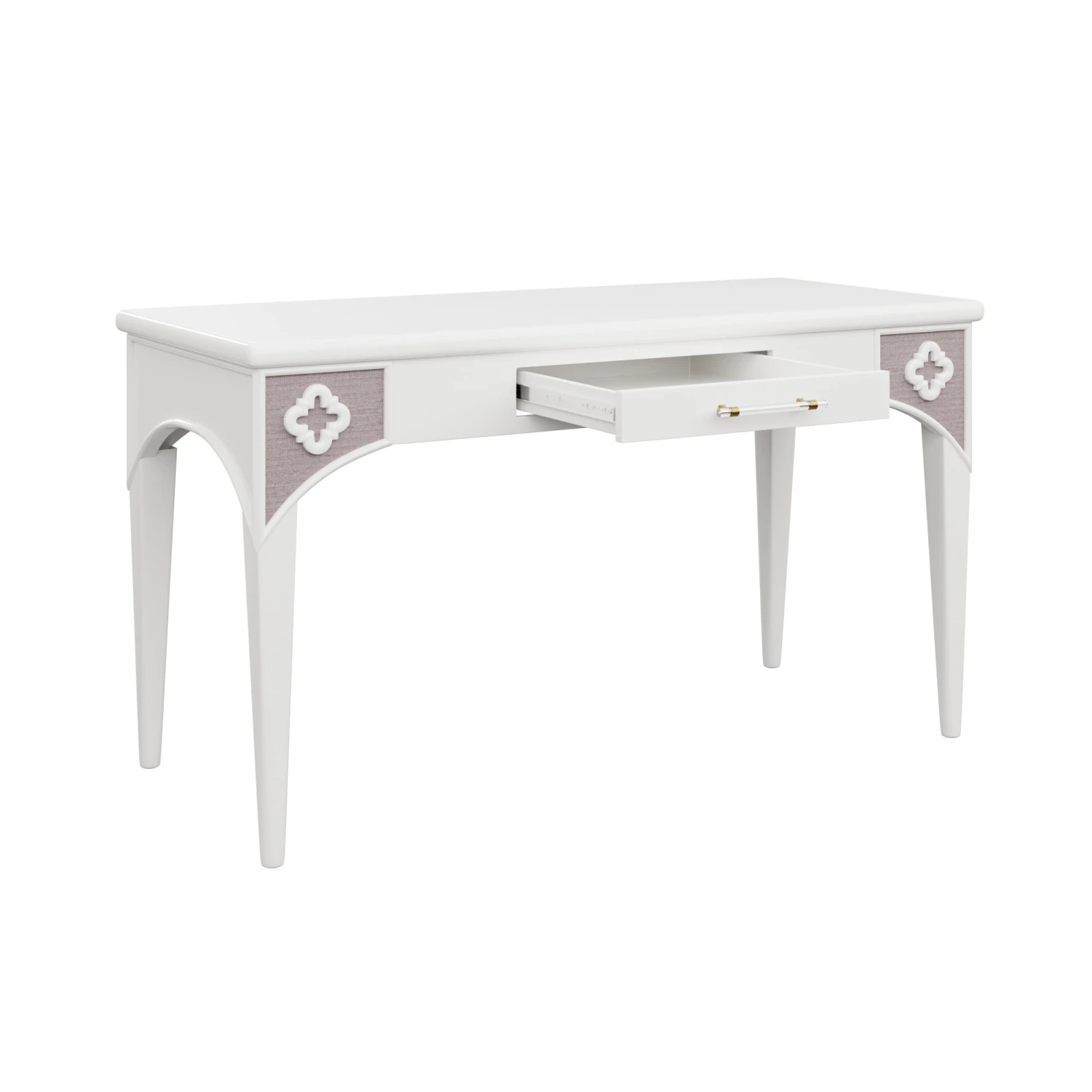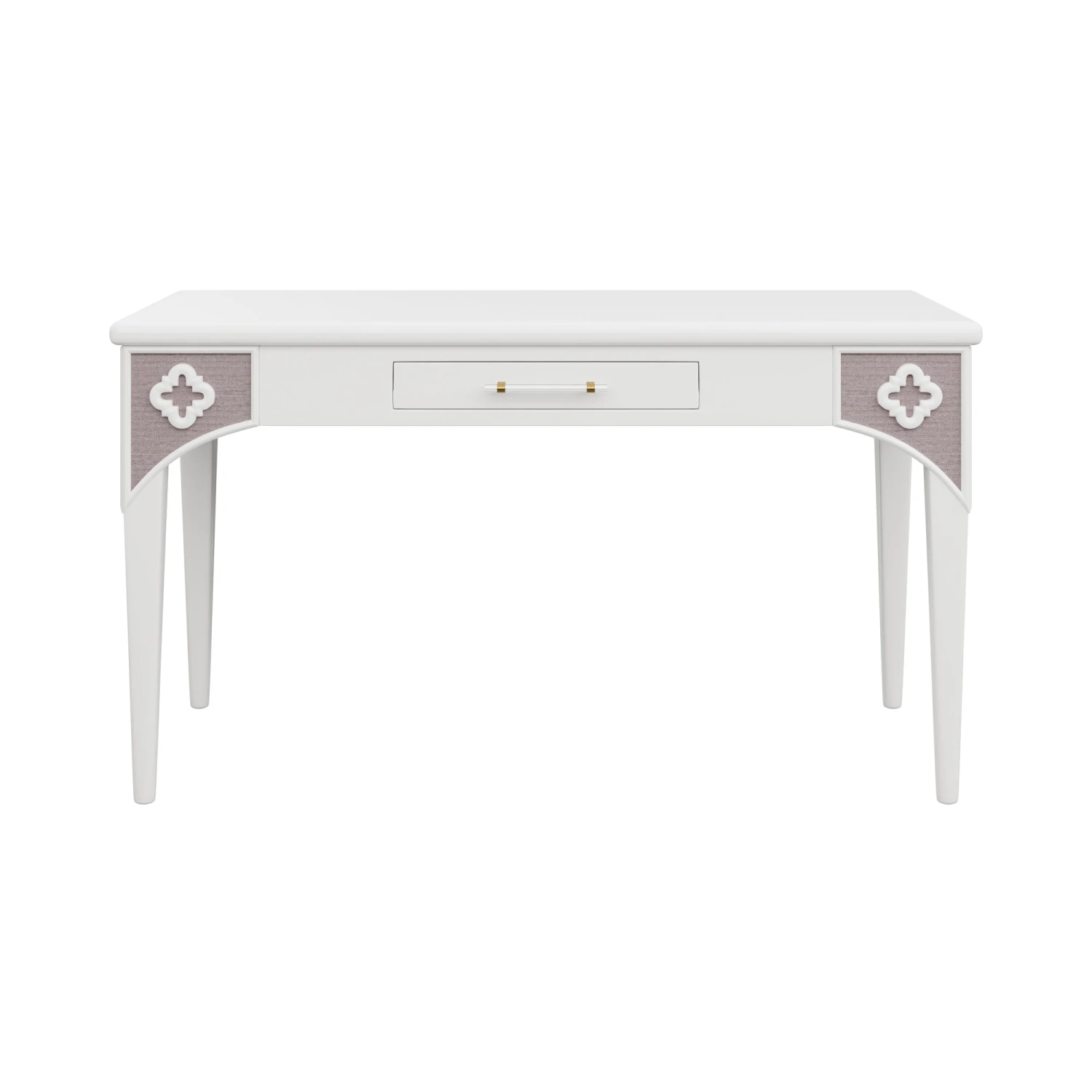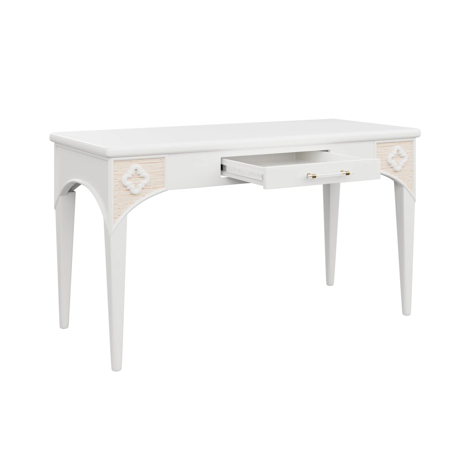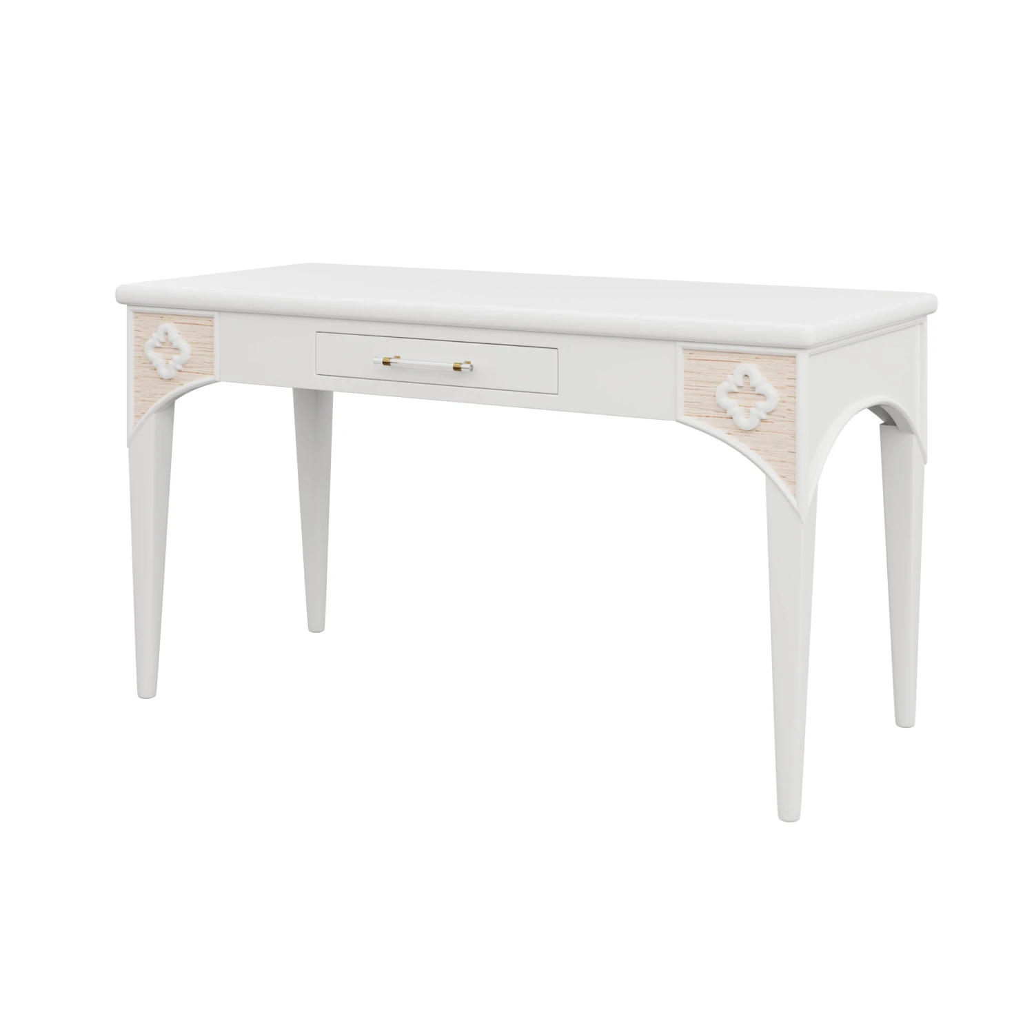 Who needsย roses when you can have Le Fleur instead?ย This floral inspired pieceย features white lacquered contrasted by grasscloth detailing andย quatrefoil fretwork.ย