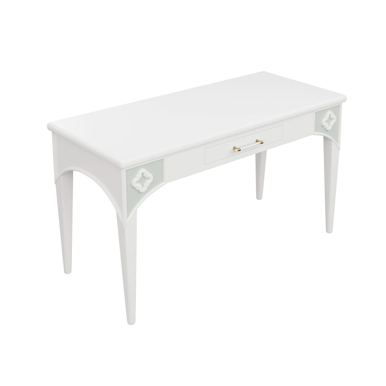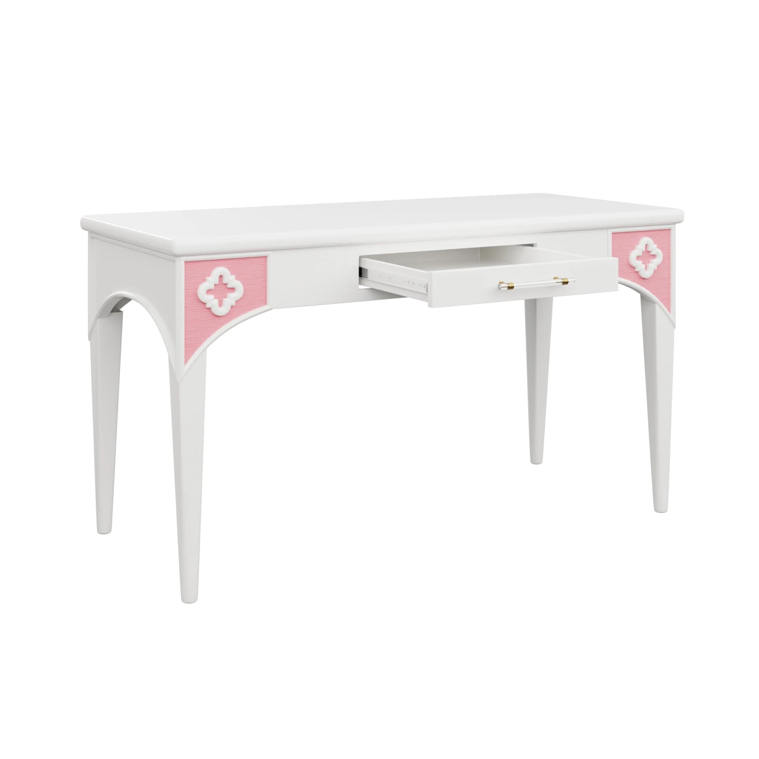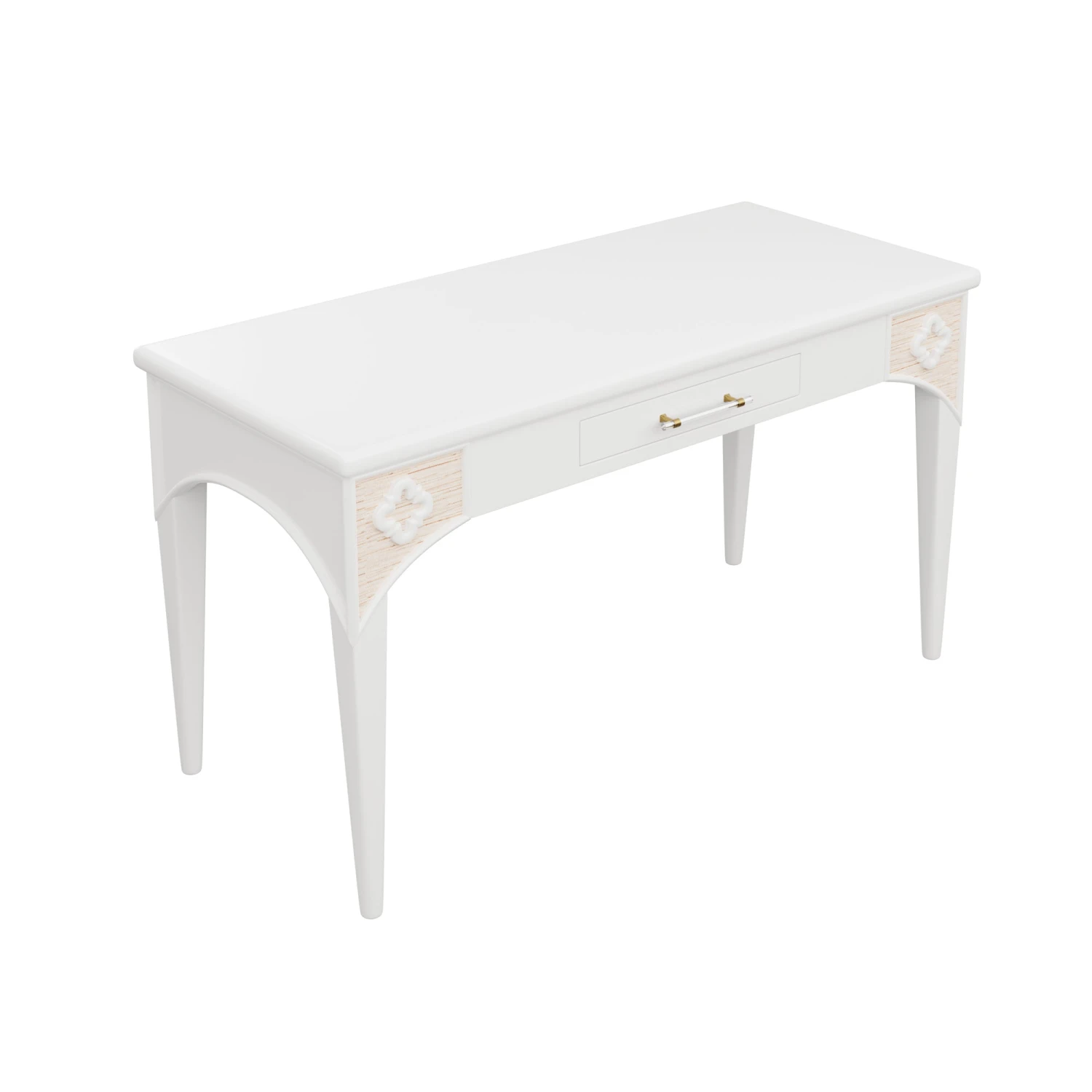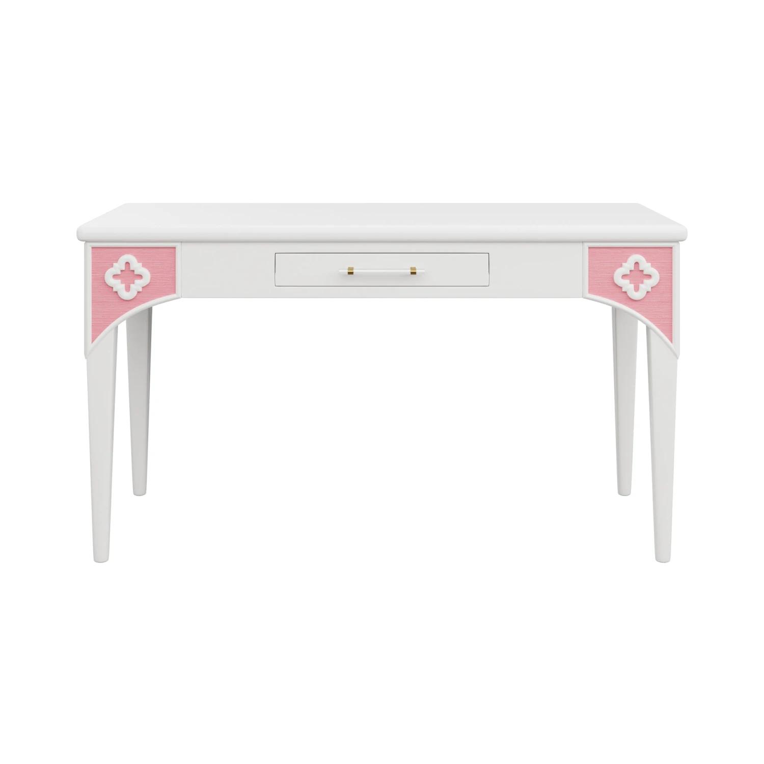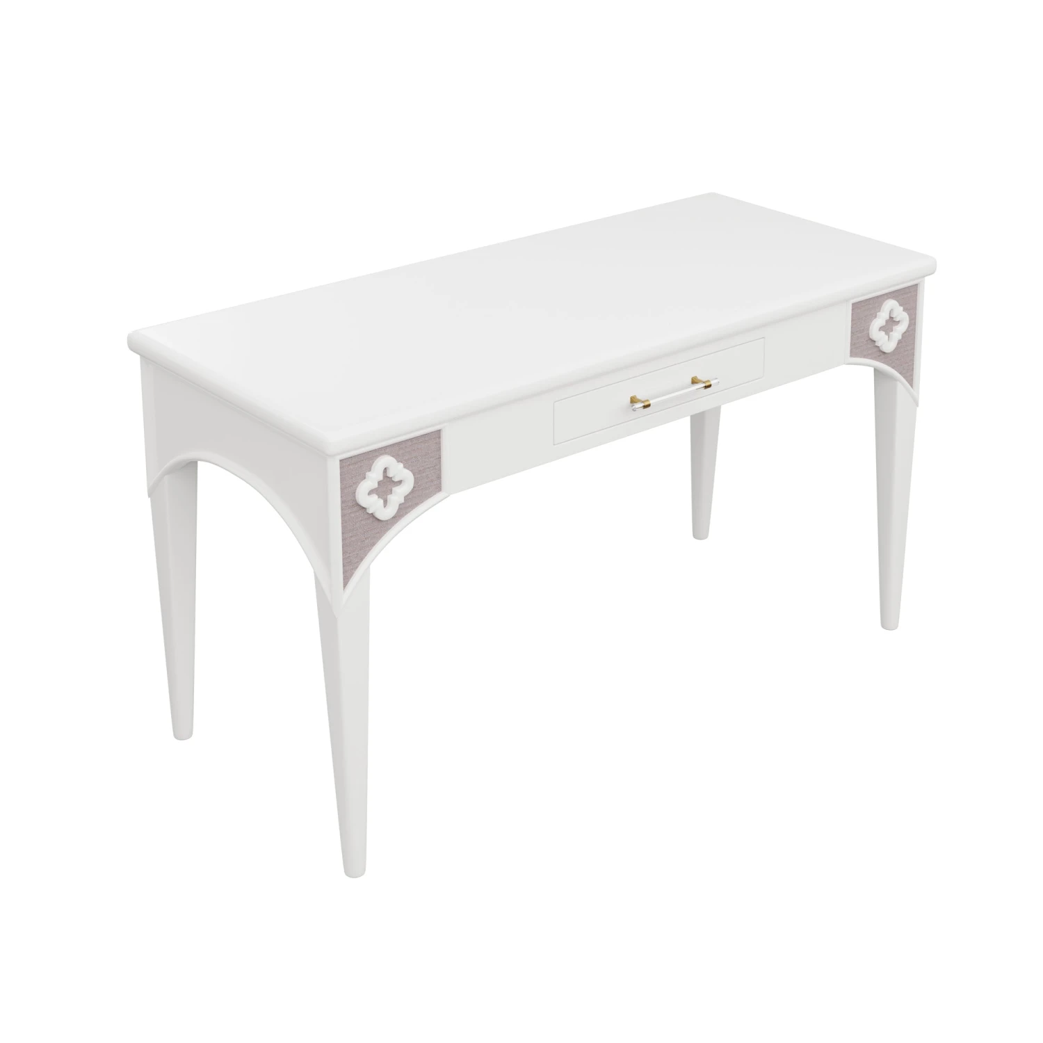 Who needsย roses when you can have Le Fleur instead?ย This floral inspired pieceย features white lacquered contrasted by grasscloth detailing andย quatrefoil fretwork.ย