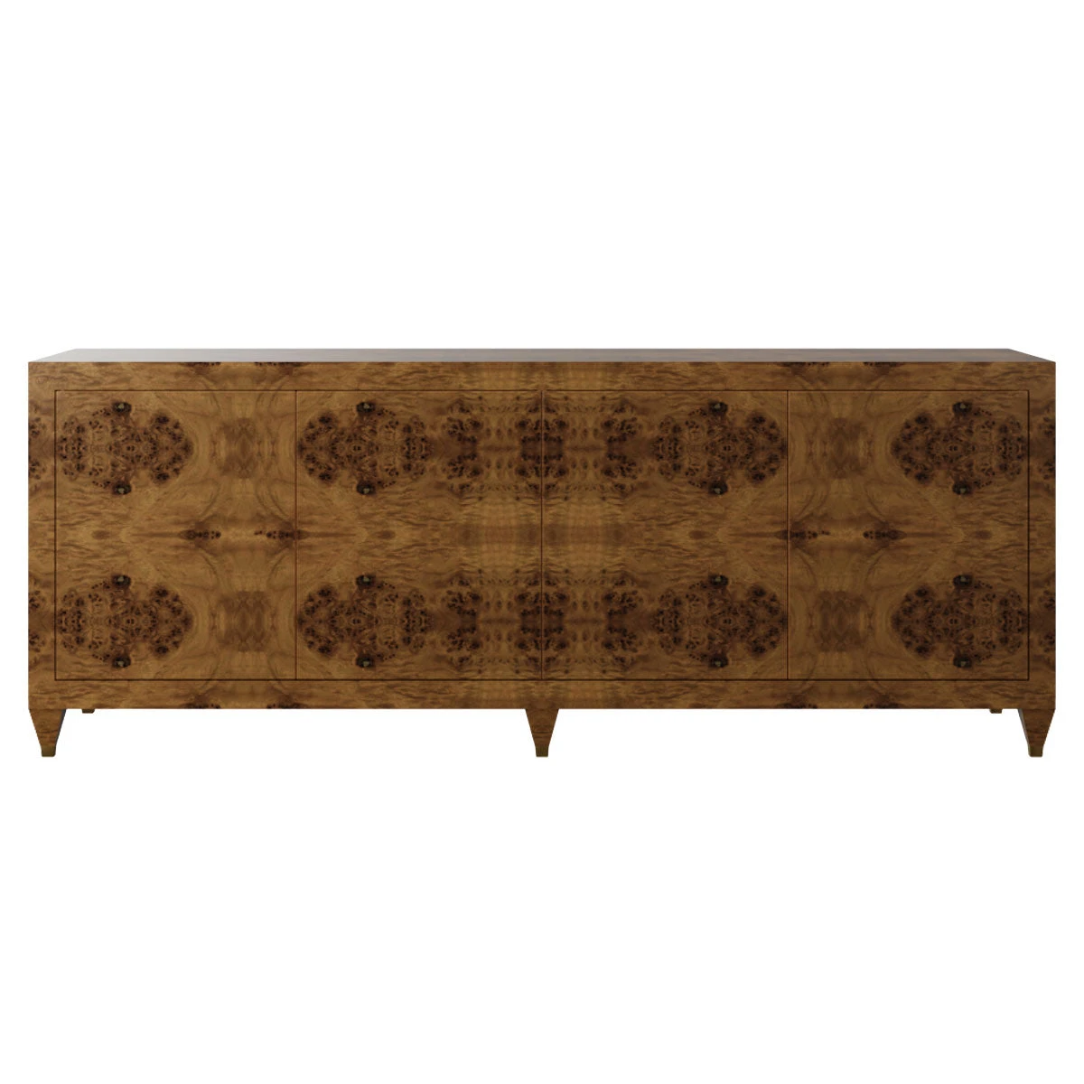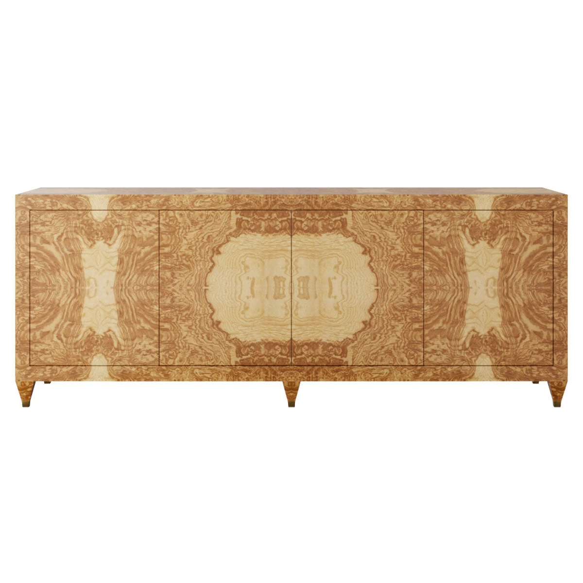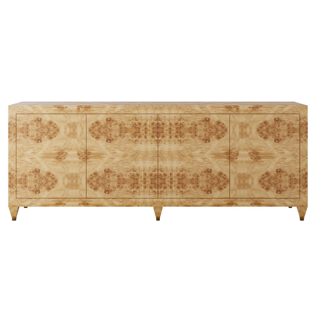 Our Scout Bespoke Mallory Credenza features classy brass sabot feet and push close latches for aย clean look. Two cabinets come with one adjustable shelf in each.