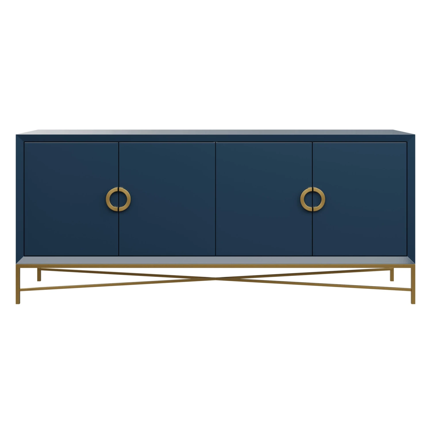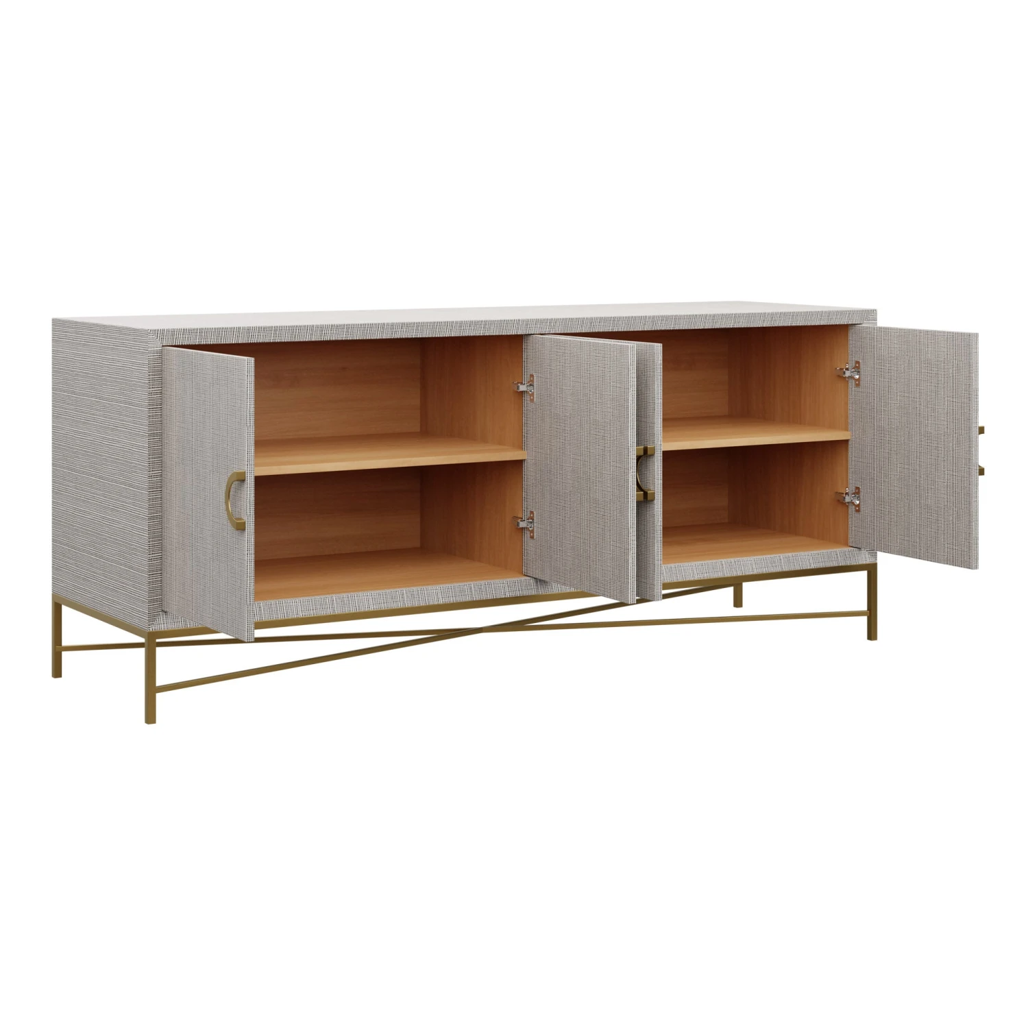 Our Monarch Credenza features a stylish X base and simple doors to allow hardware to shine. Two cabinets with an adjustable shelf in each are the perfect place to store away your odds and ends.ย