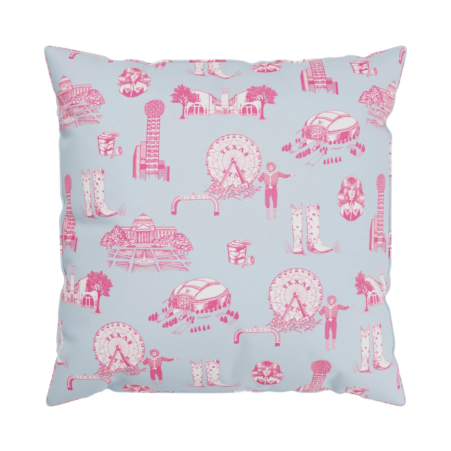 Celebrate your Texan pride with this one of a kind Dallas Toile.ย Inspired by the Big D, this hand-illustrated Dallas Toile print features iconic staples of the city.