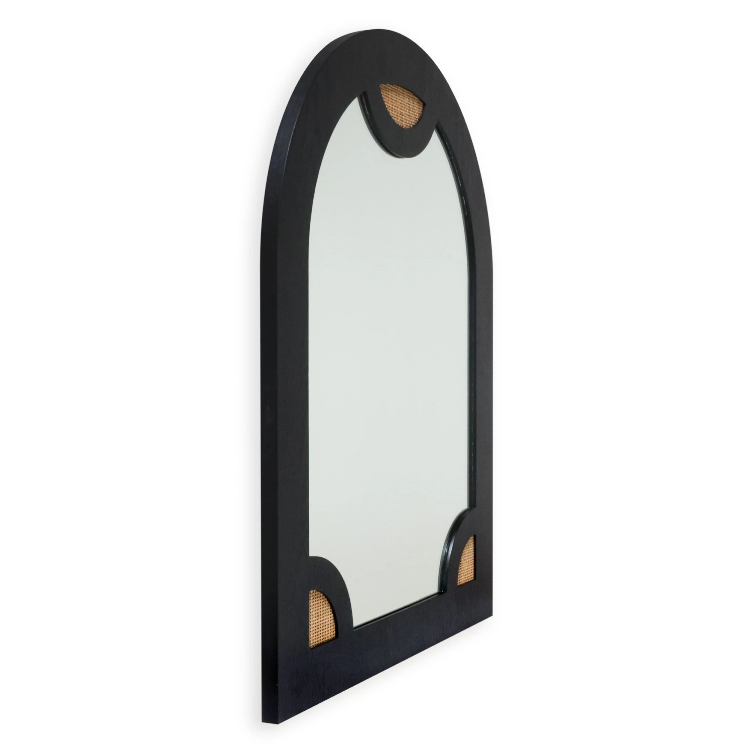 Our Demi Mirror features matte black lacquered wood that bringsย on the drama and frames insetย rattan detailing for an organic touch. A timeless arched shape means this one willย blendย seamlessly with its surroundings, while still making a statement.ย