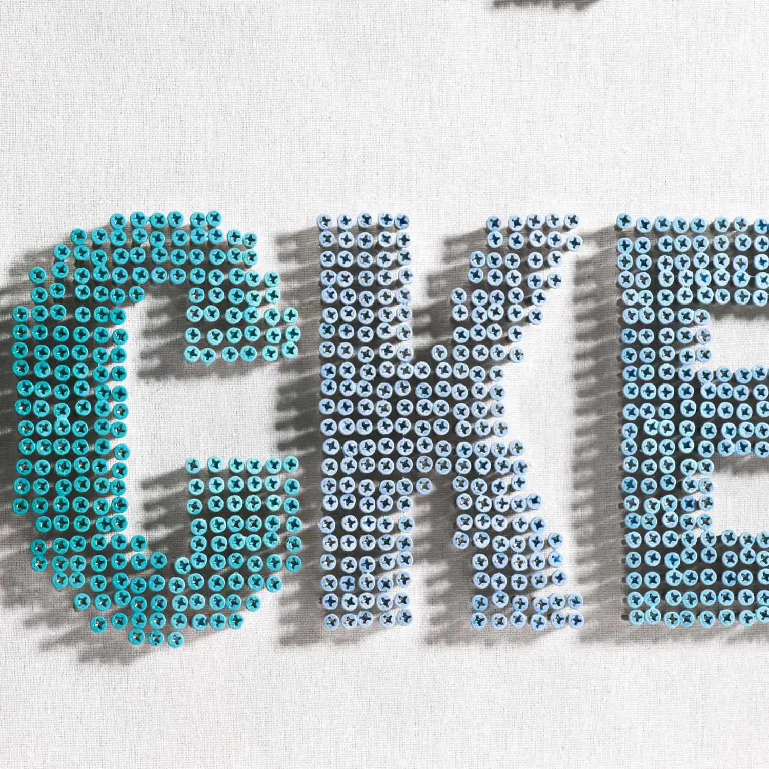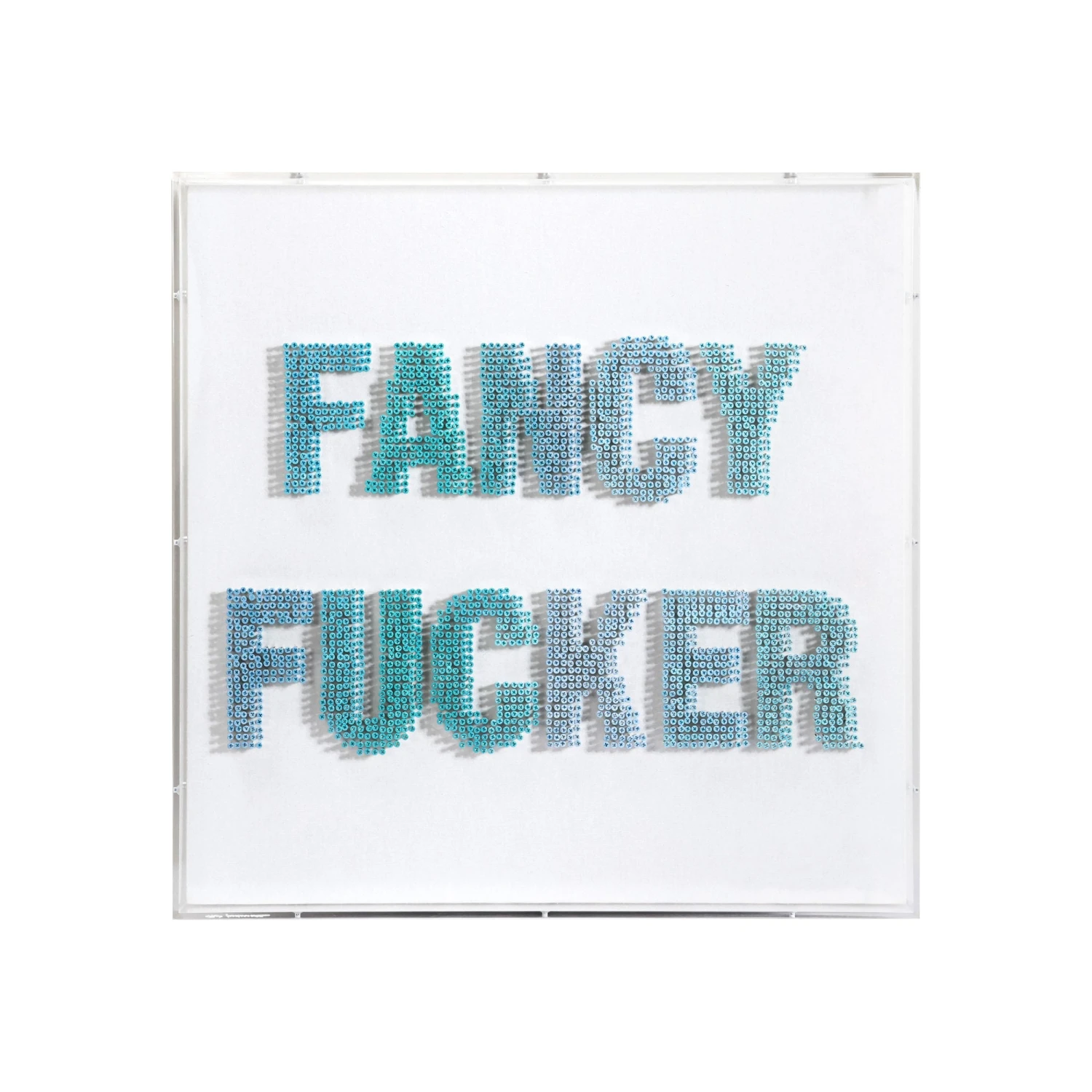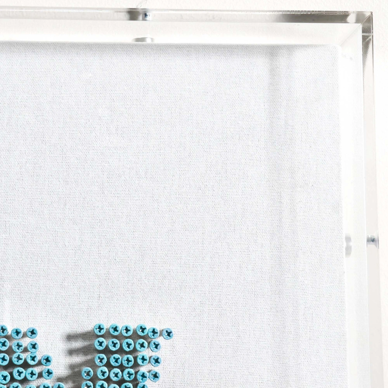 From the Tat Frederick studio,ย Dougleyann features multi color screws that have been hand-screwedย into a white canvas. Eachย screw isย paintedย and assembled toย create an ombre effect. Framed in an acrylic shadowbox.