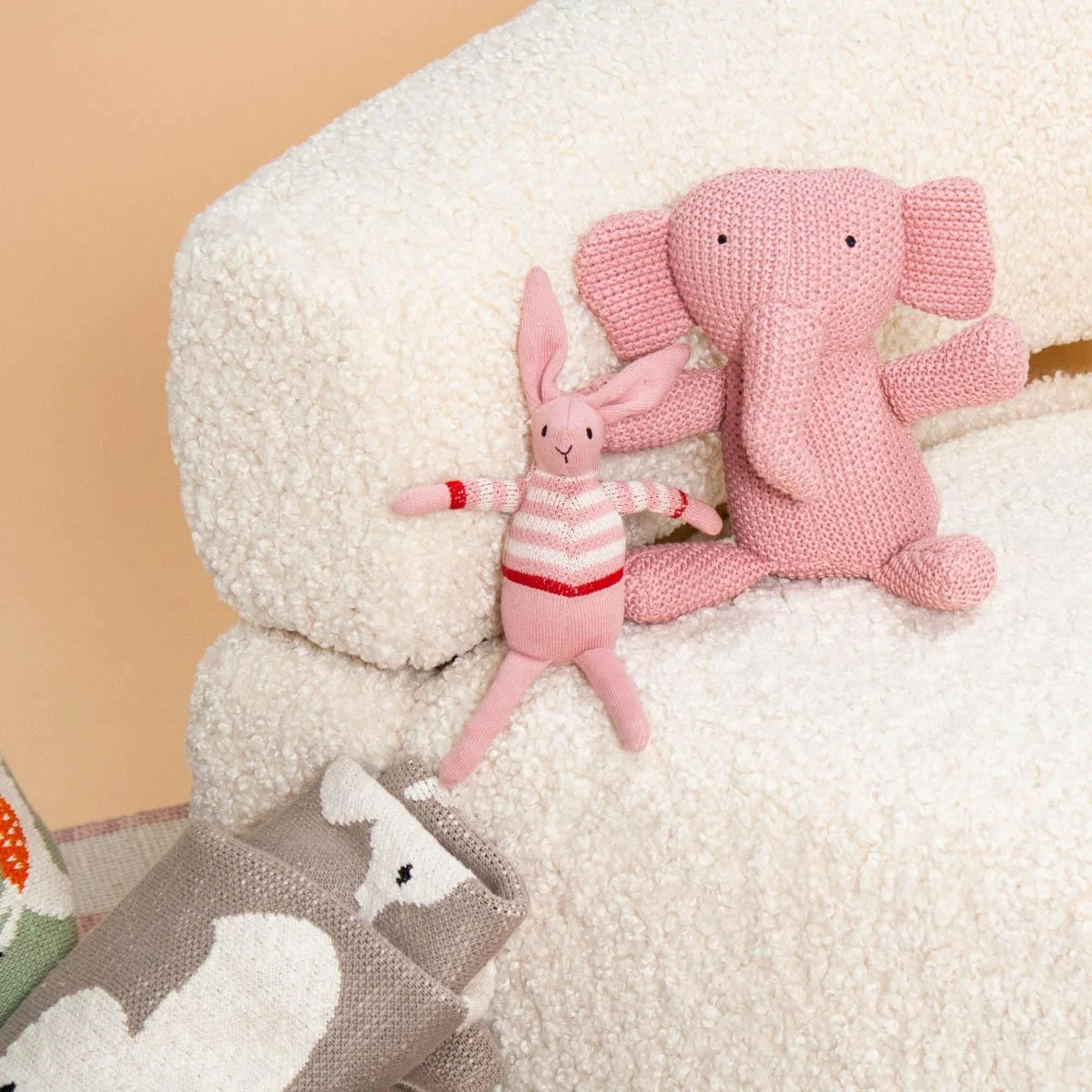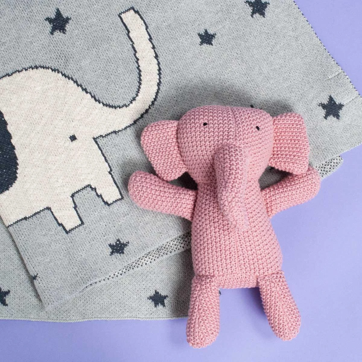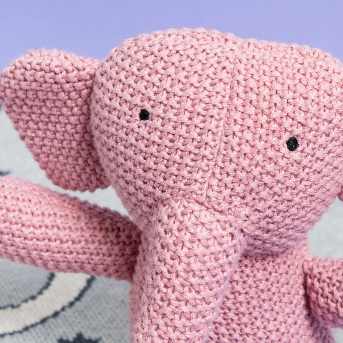 Our pink Elephant Friend stuffed animal is hand-knit from cotton and oh so soft.