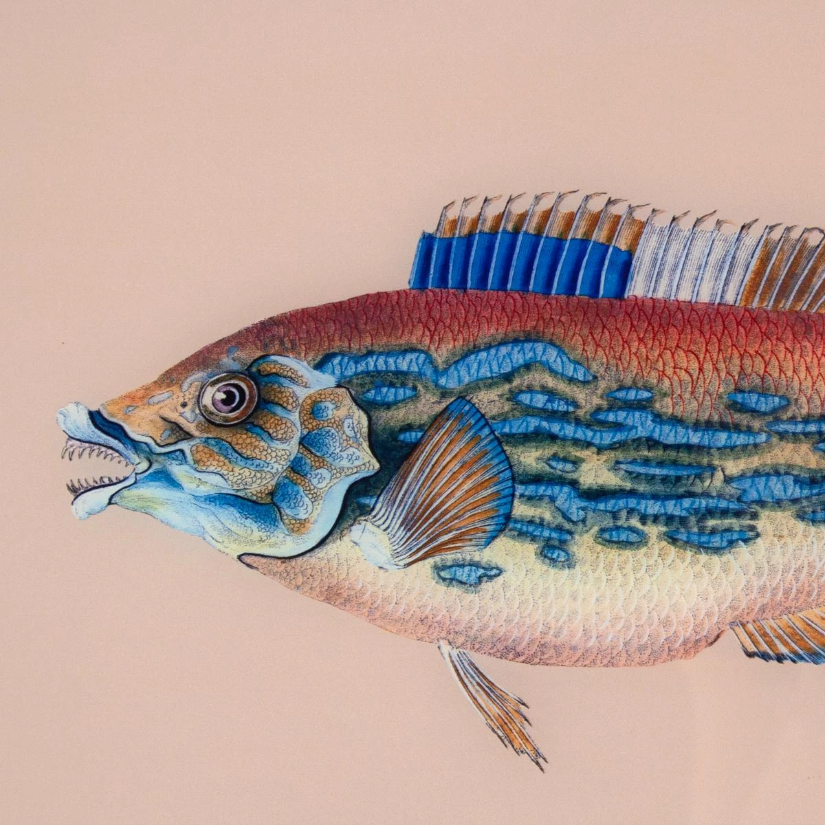 Scout exclusive pastel fish artwork. UV printed on acrylic film with a black and gold frame.