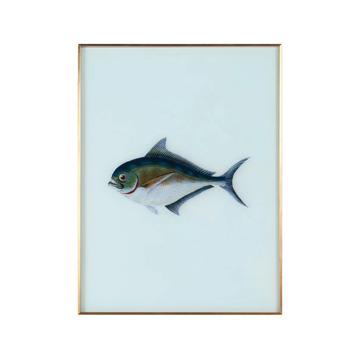 Scout exclusive pastel fish artwork. UV printed on acrylic film with a black and gold frame.