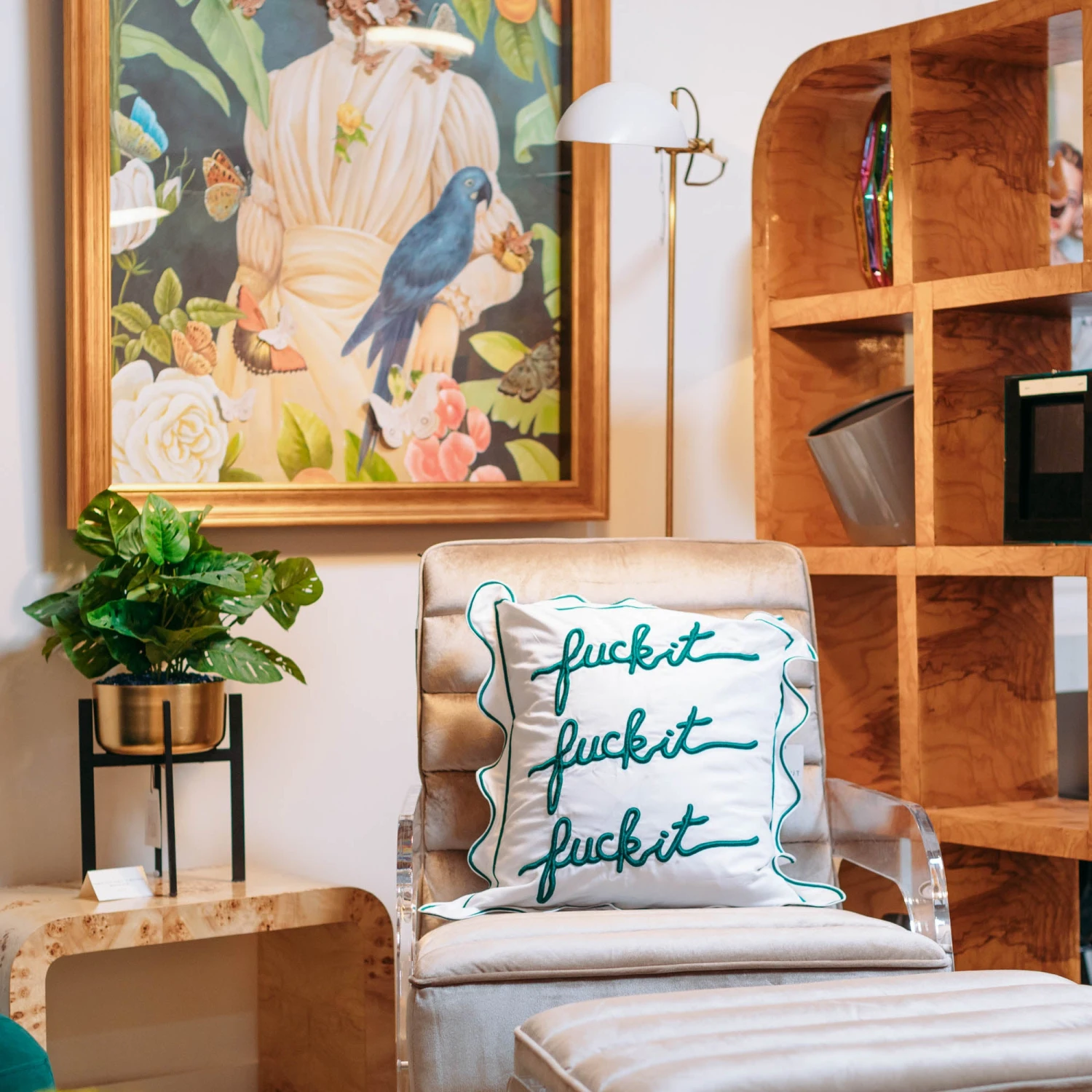 Personality piece anyone? This Tat Frederick pillow cover collaboration with “fuck it” embroidery is aย bigggg mood for sure.