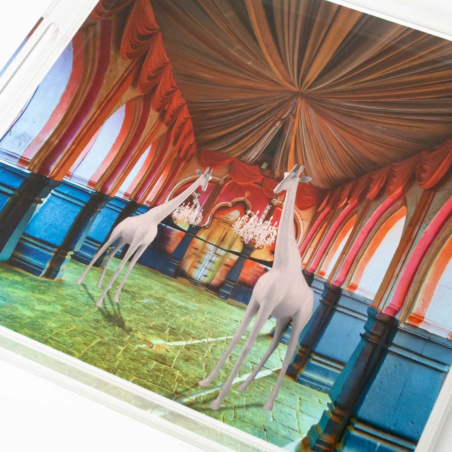 Scout exclusive giraffe tray featuring a multicolored design. Perfect for a coffee table accent piece, shelf decor or catchall for smalls around the house.