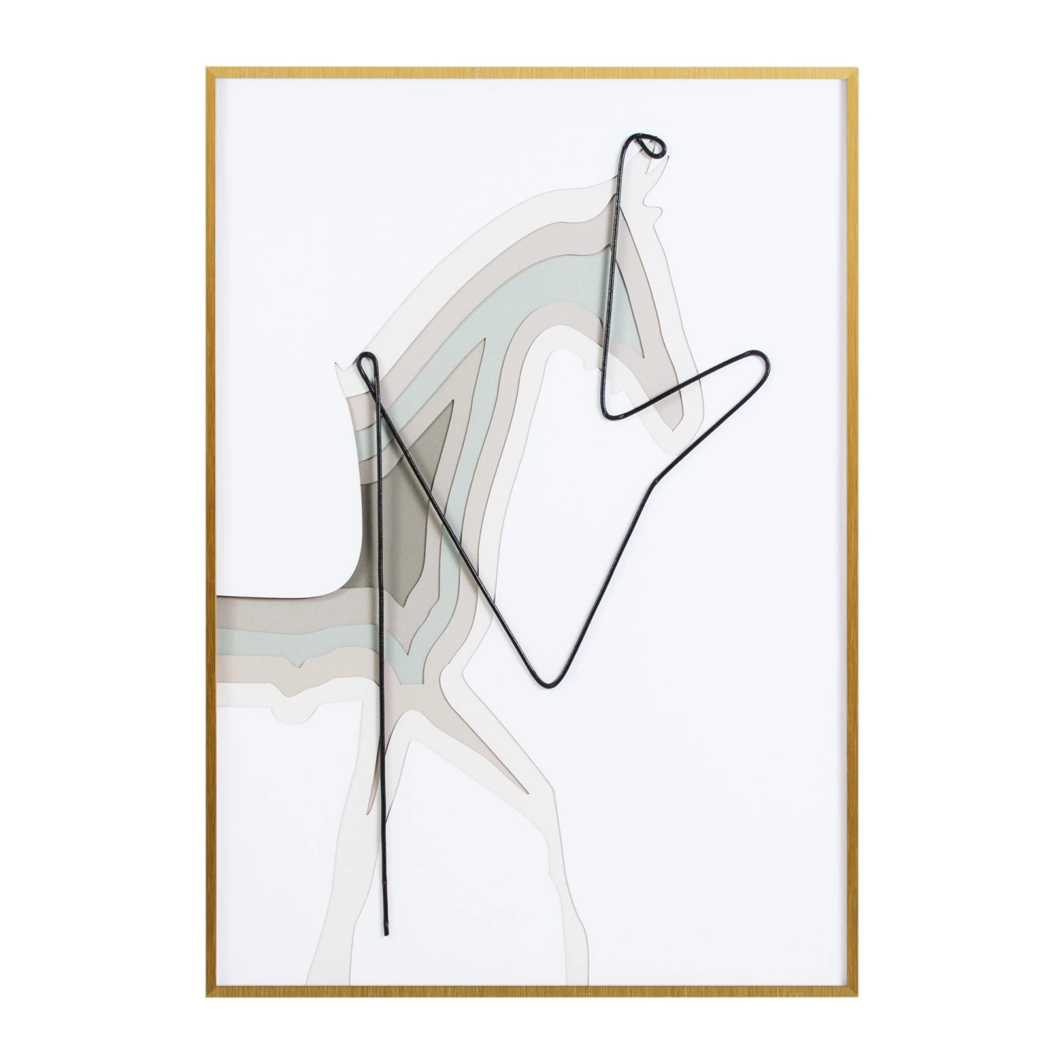 Majestic and intriguing. This simple but stunning piece is perfect in any home. Hand cut pieces shaped like a horse and framed in a gold frame.
