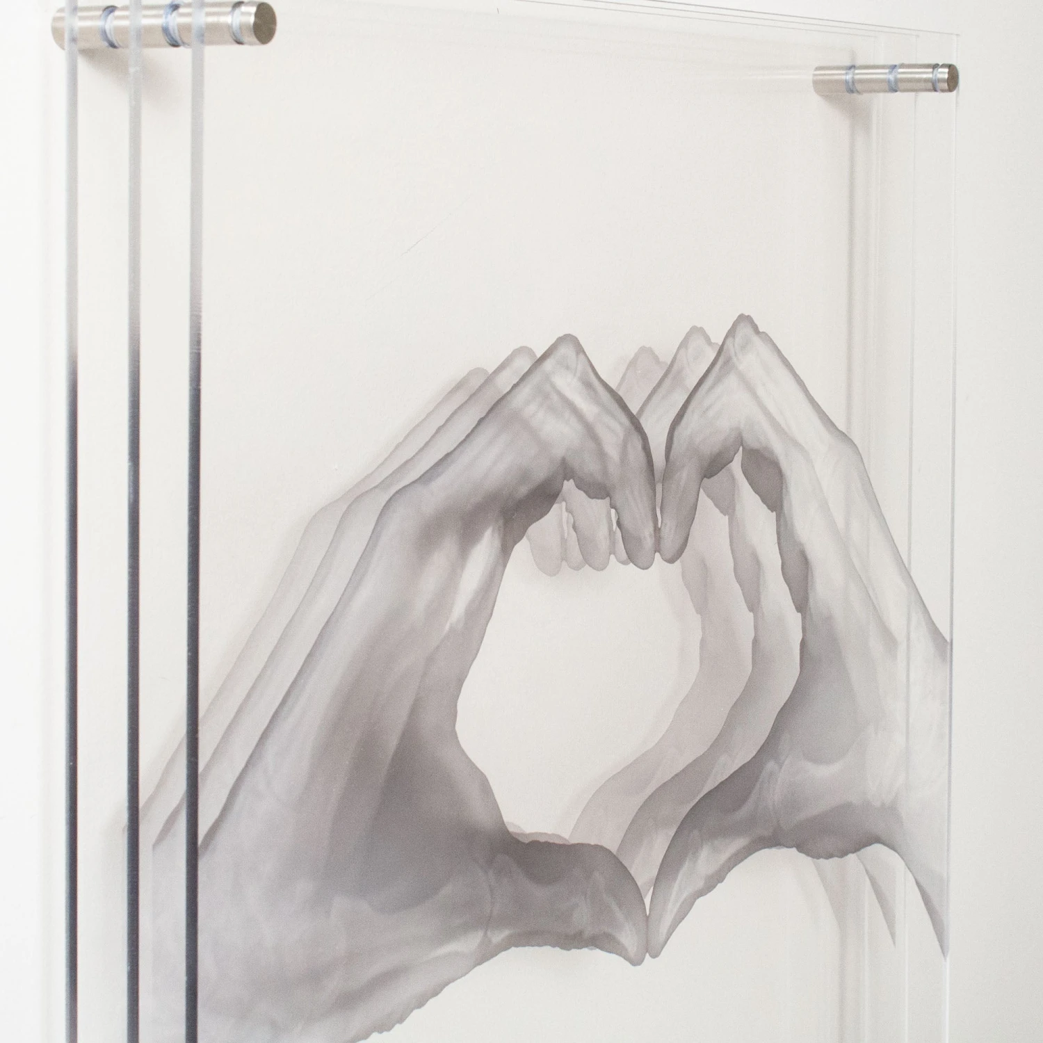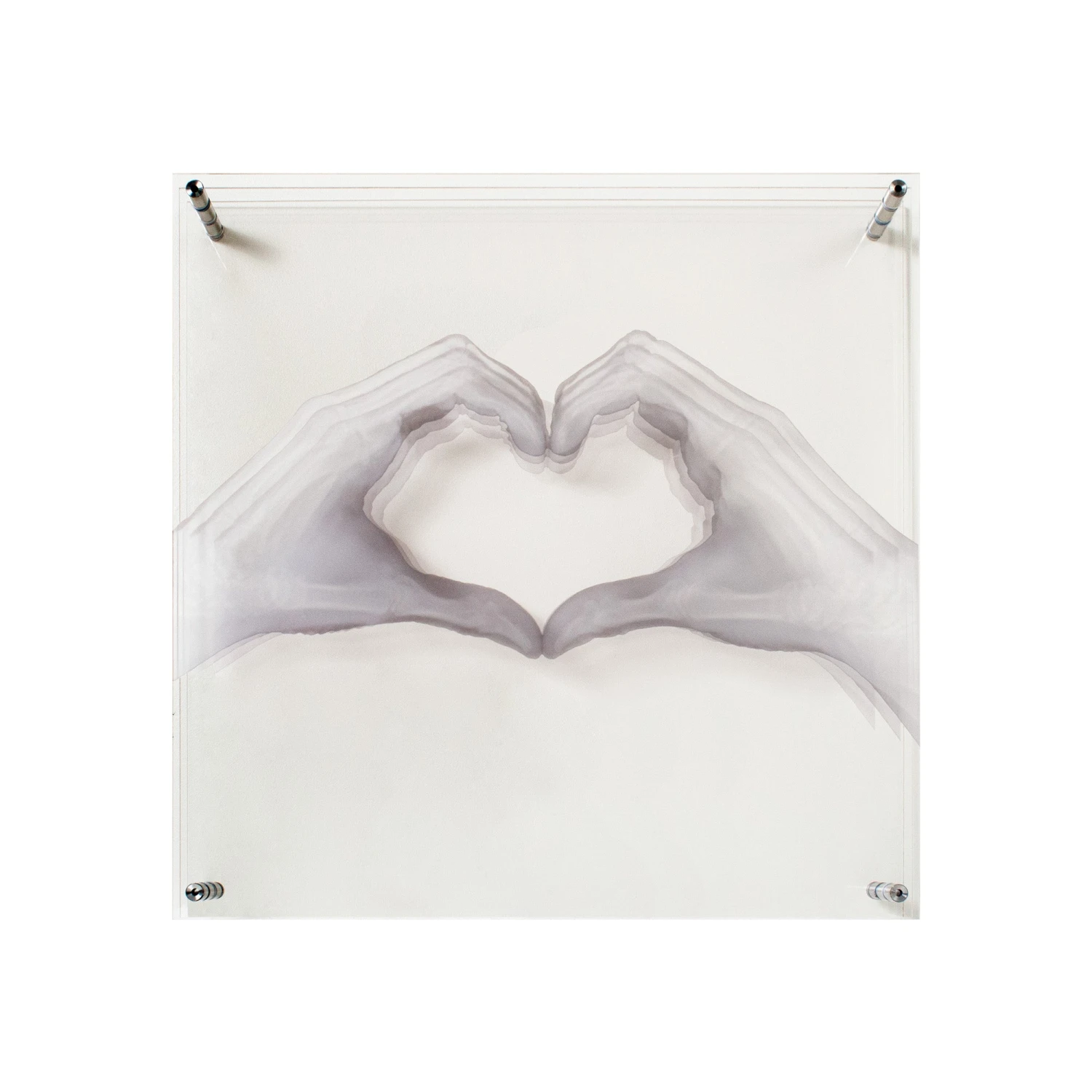 Featuring pieces of layered acrylic that depict an x-rayed hand showing some love, we love this personality piece.
