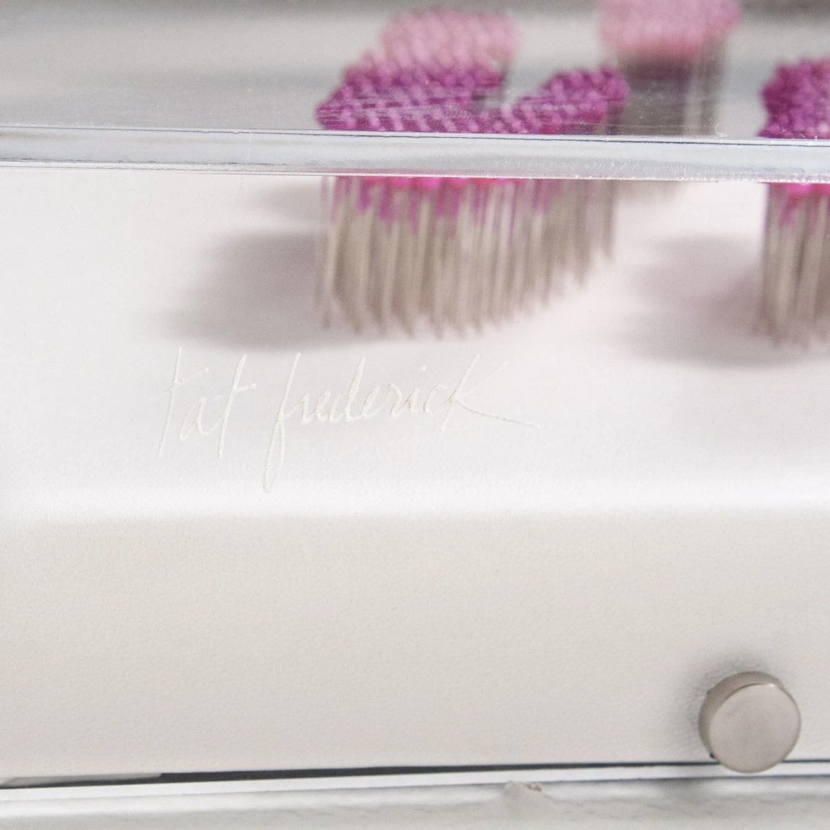 Mixed media artwork by Tat Frederick made with individually placed pins and framed in an acrylic shadowbox.