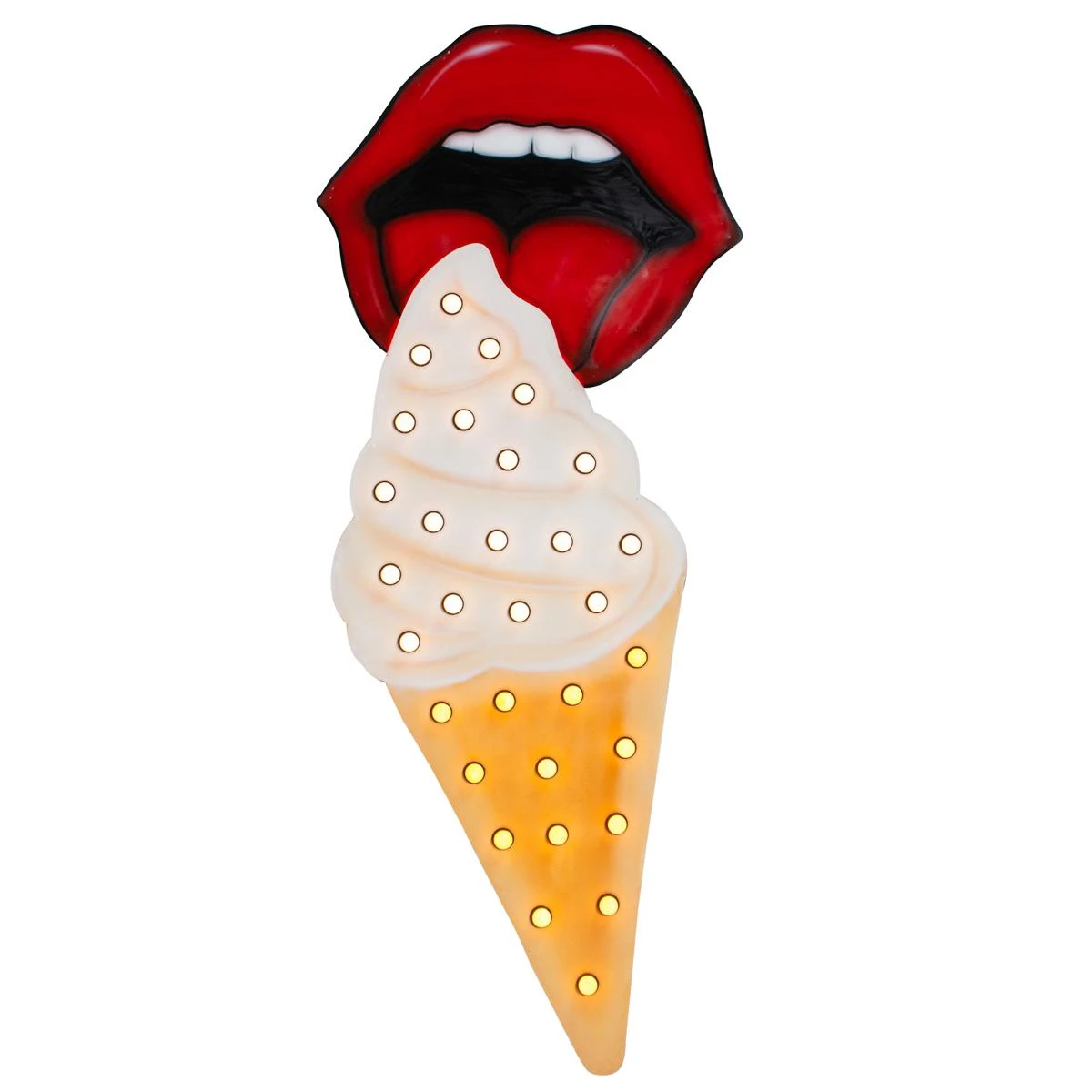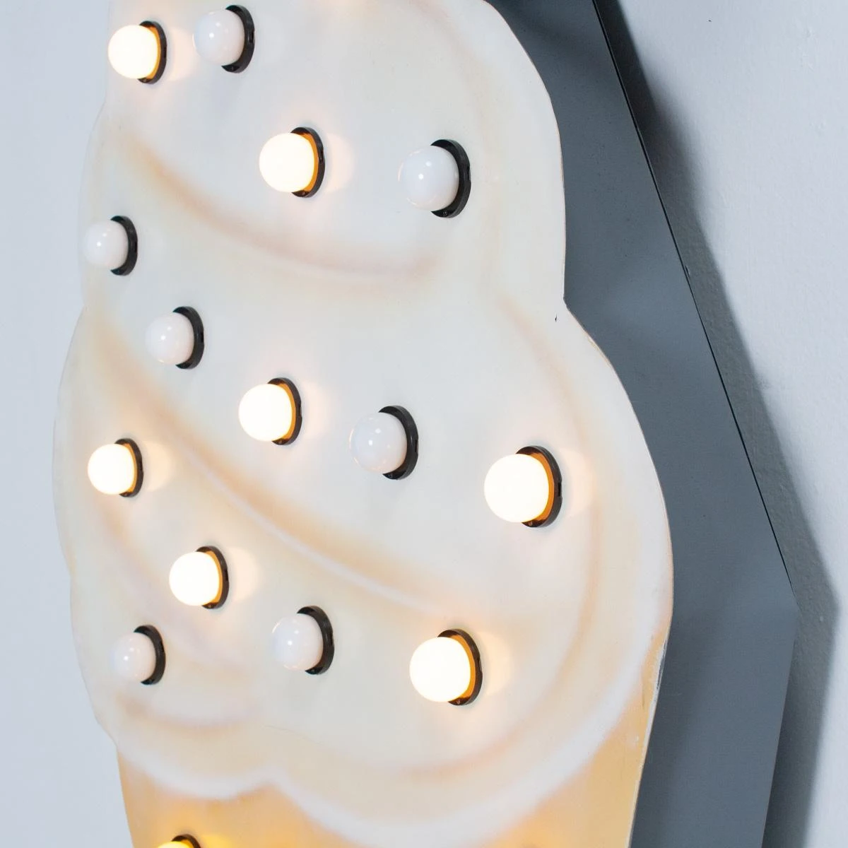 Have a taste of something extra unique. This nostalgic light-up ice cream sign was created by artist Garland Murphree and made to look vintage.Β