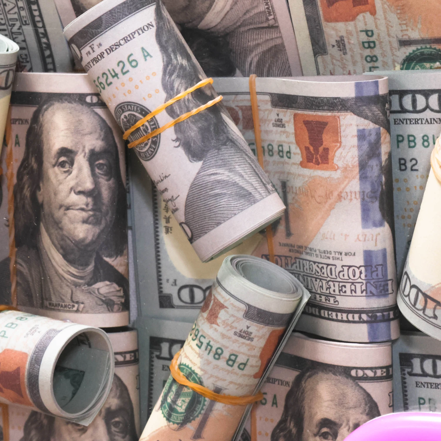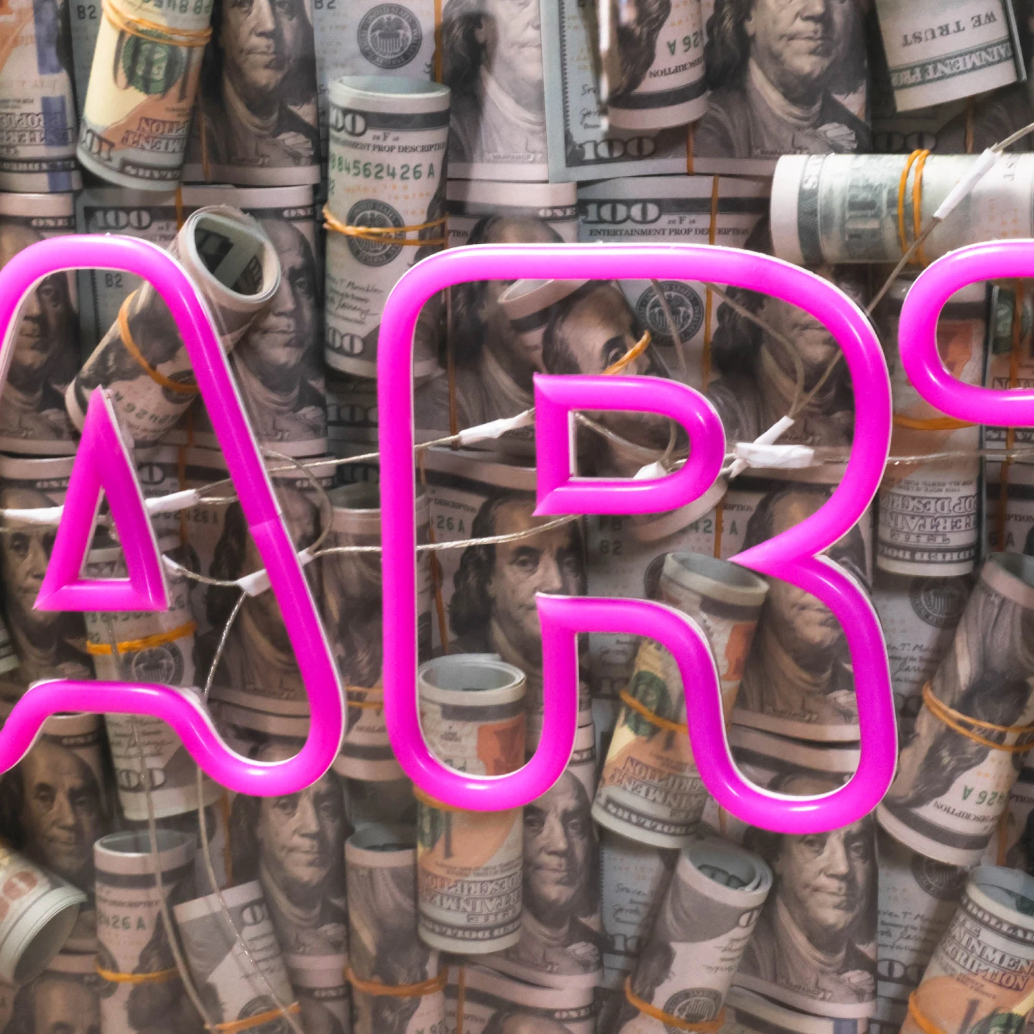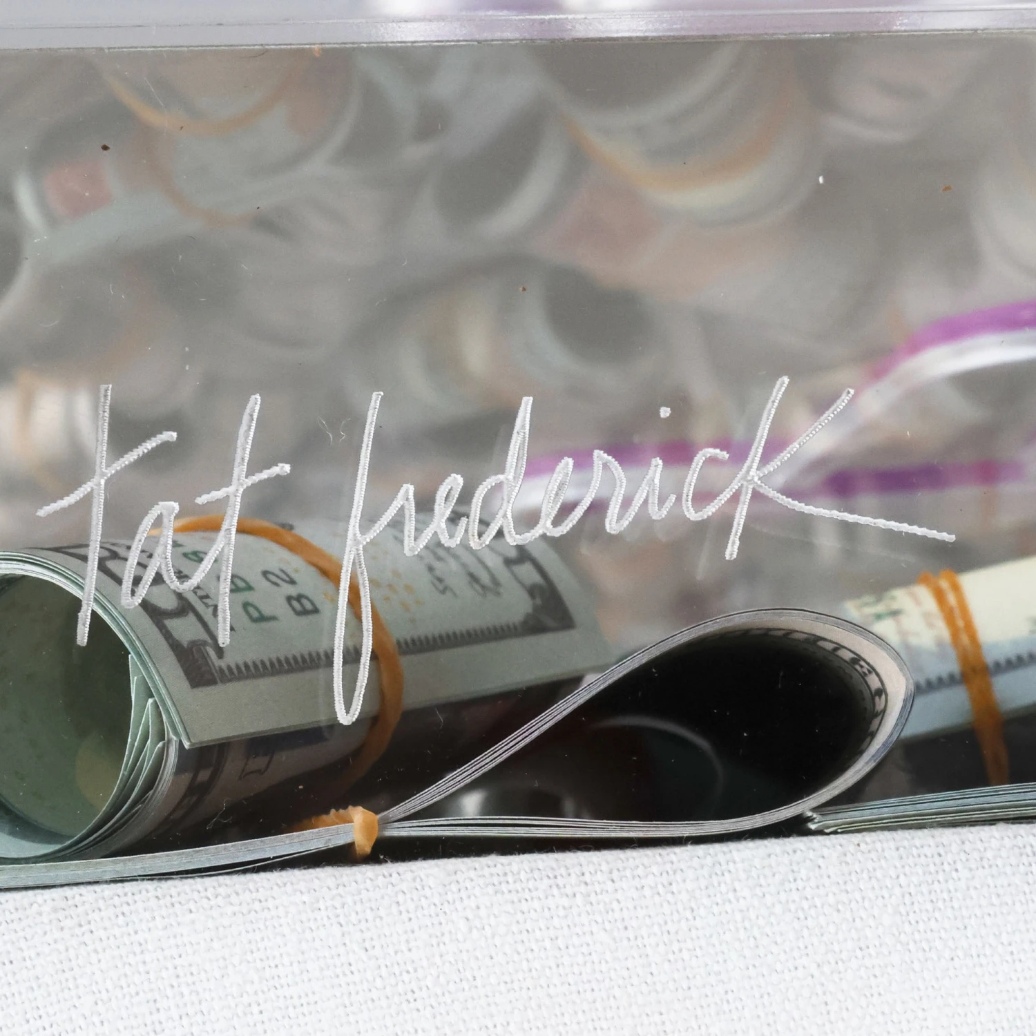 From the Tat Frederick studio,ย ‘In Art We Trust’ features money rolls and neon lights. Once eachย money roll is hand-placed, it is encasedย in an acrylic shadowbox with the neon lights applied toย the outsideย of the shadowbox.ย