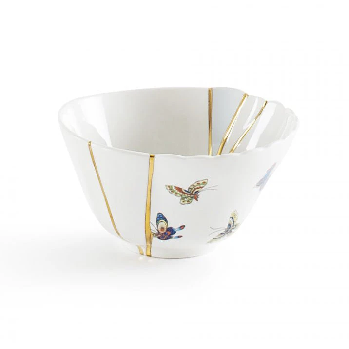 Kintsugi Japanese art assumes contemporary shapes. The delicate porcelain is glorified and enriched with gold fragments for a tableware collection made of charming and unexpected compositions.