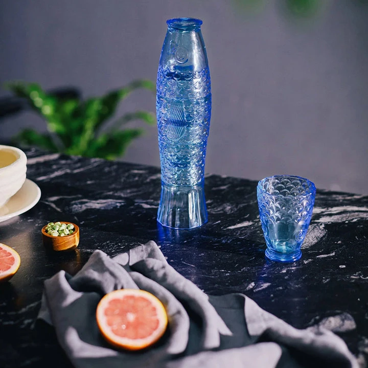 Sure to delight, theseย mint glasses stack to form a fish friend.
