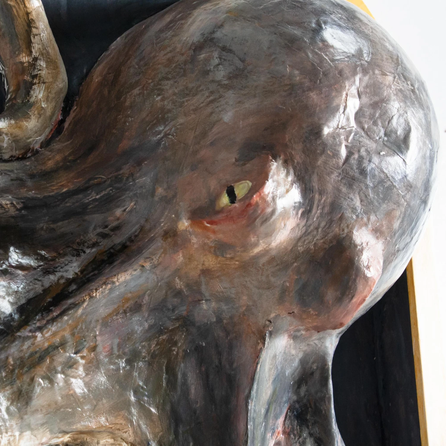 Media:ย Cardboard, Acrylic, and Paper Mache