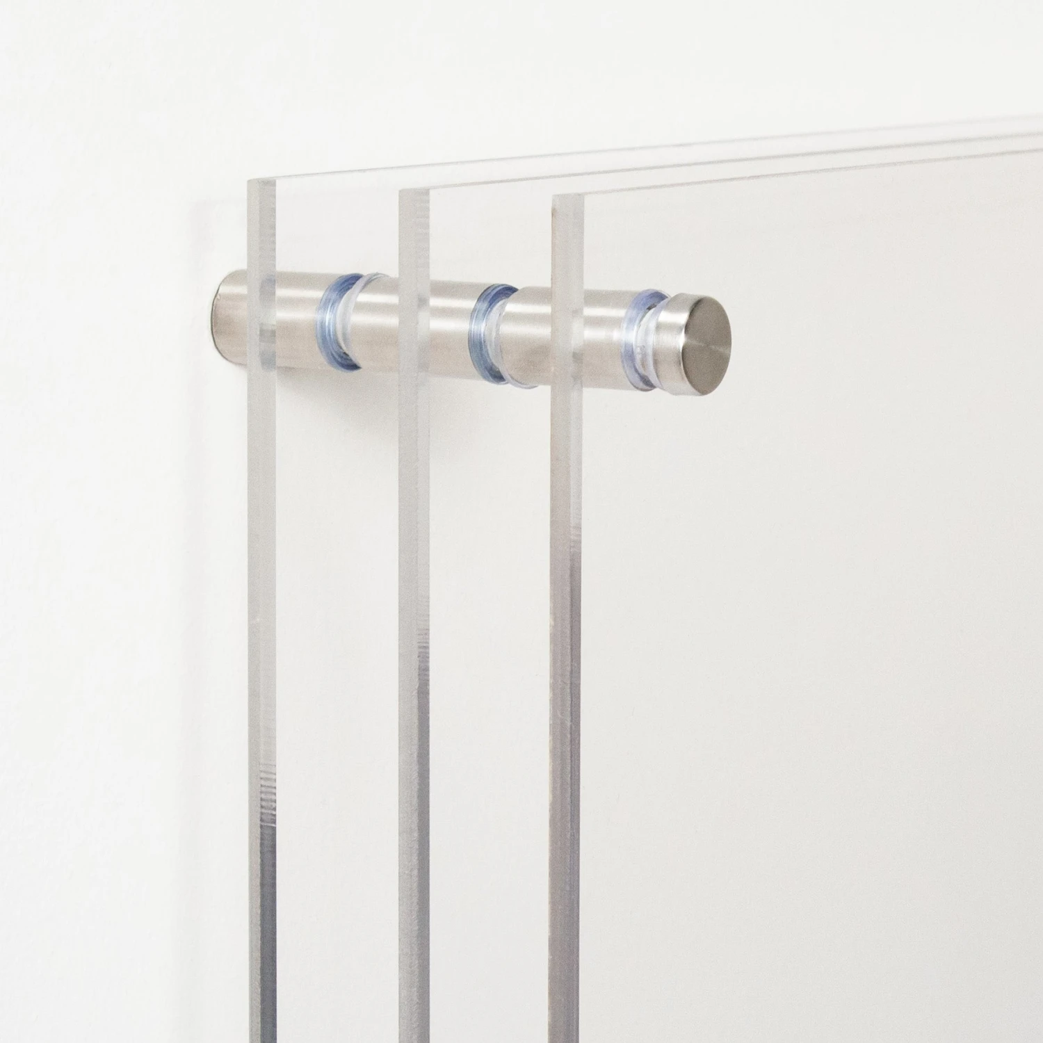 Frame: Acrylic float frame with silver bolts. Professional art installer recommended.