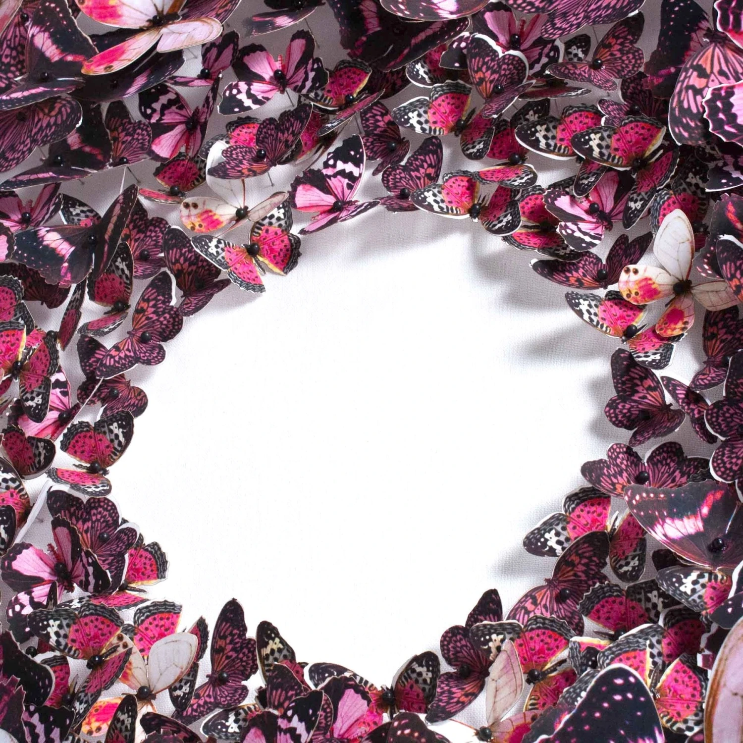 Intricate butterfly artwork from printed and hand-cut paper of the Jen Lin Series. Mari is made to look like real butterflies, but only a closer look will reveal the paper form.
