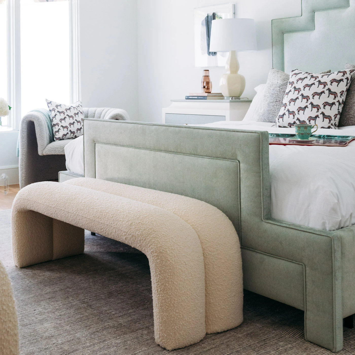 Made from looped yarns for a cozy, nubby texture, this poly-blend boucle fabric is suitable for all-day lounging or high-traffic use. Want to try before you buy?ย Click hereย to order a fabric sample!