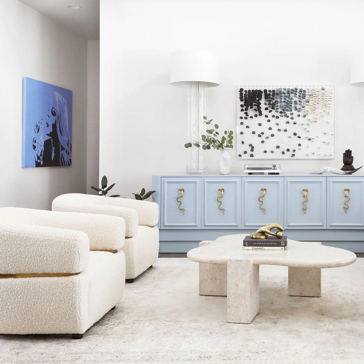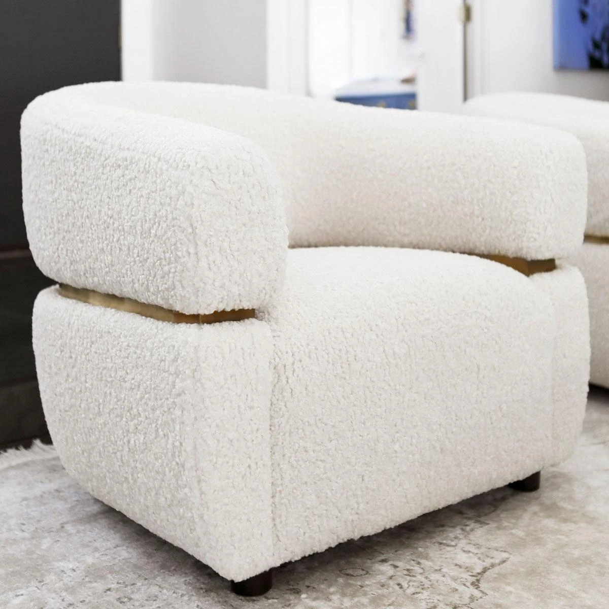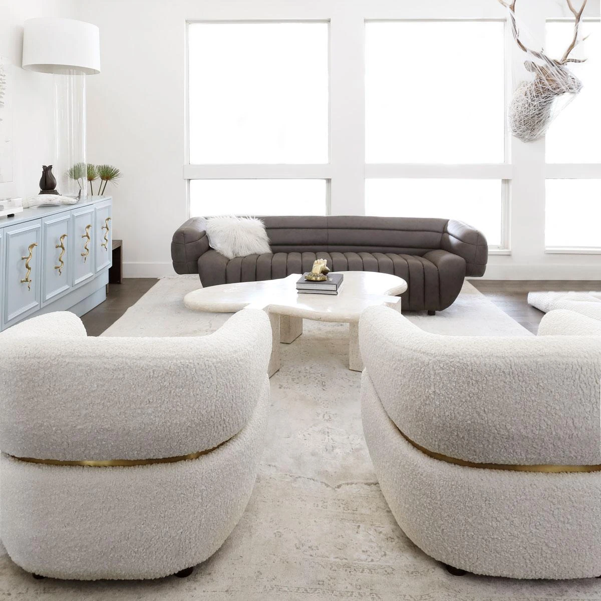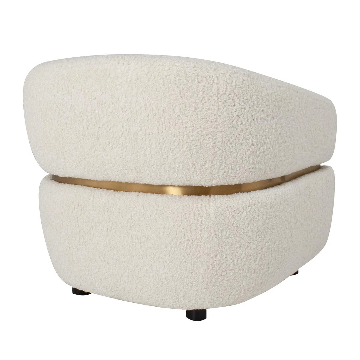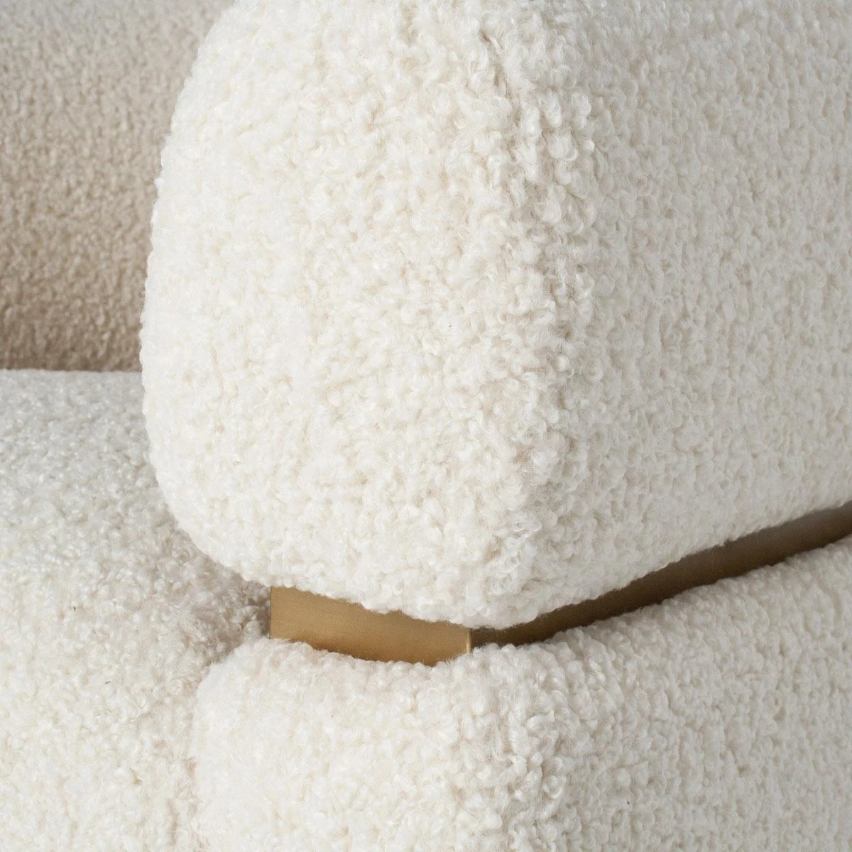 The McDreamy of all boucle chairs: meet our McCloud Chair. Soft to the touch and sinuous to the eye. Ivory boucle fabric is cinched with a brass waist band for extra style.