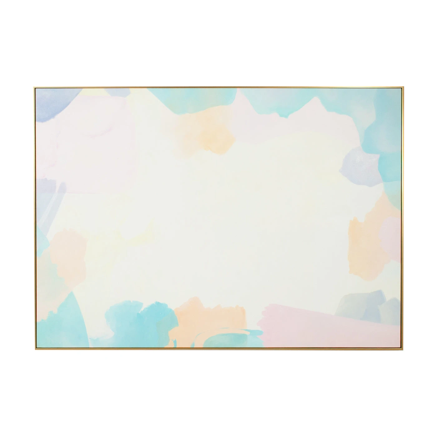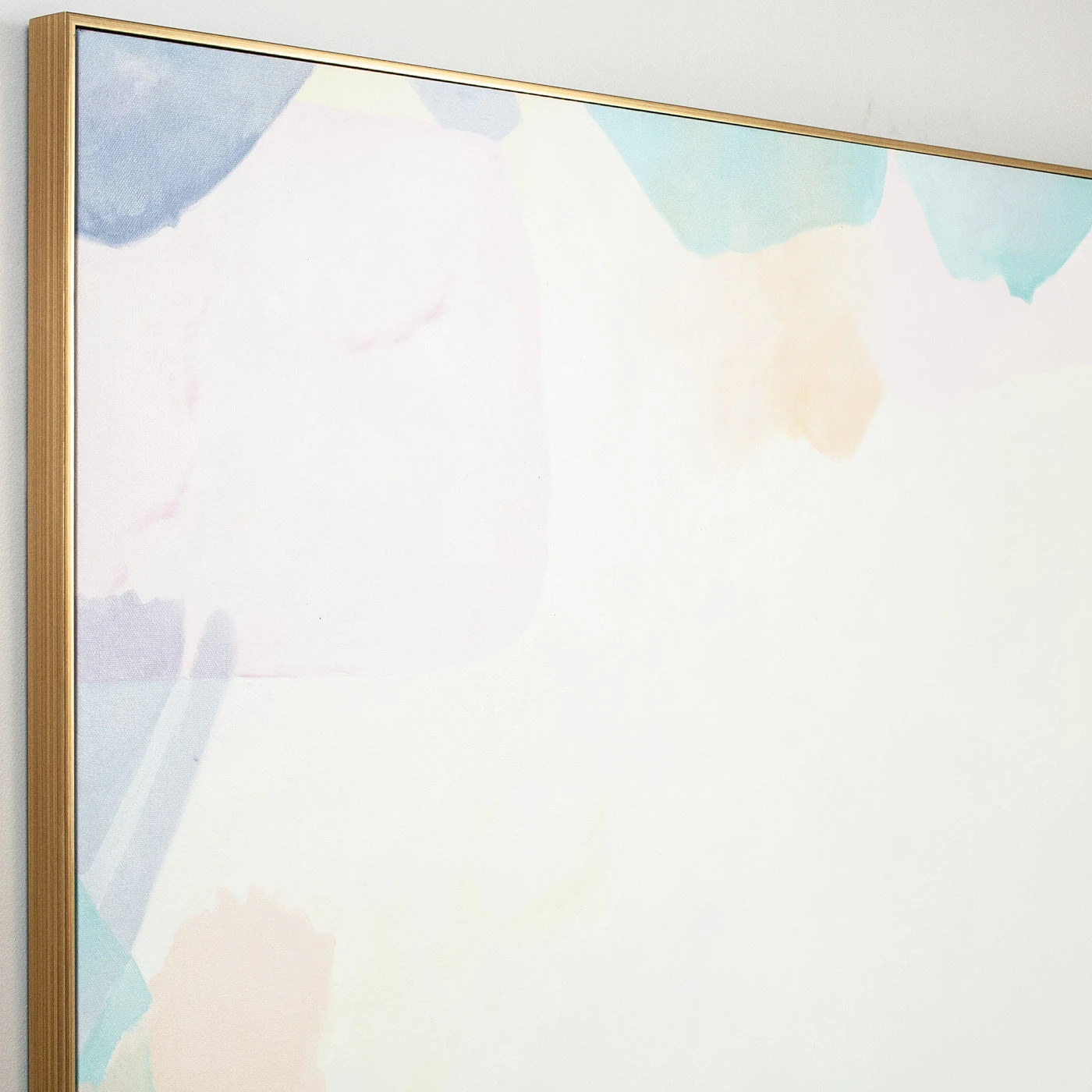 Framed in gold, Mela’s Moment features muted color in an abstract design. Printed using the giclee process.