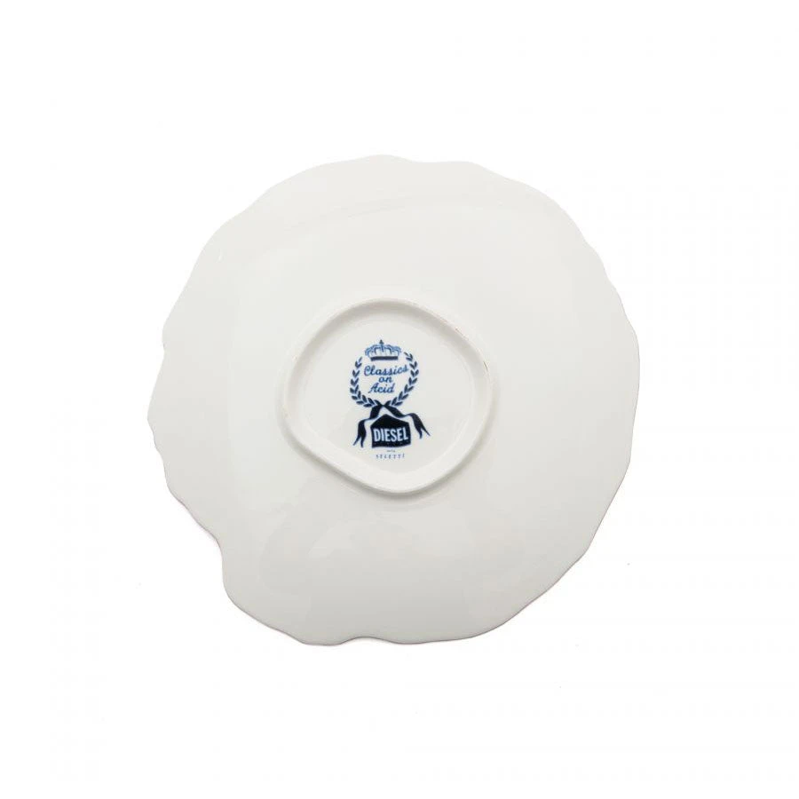 A traditionalย ceramic with aย twist – call it classics on acid. Dessert plate by Seletti featuring a warped ceramic motif in shades of blue.