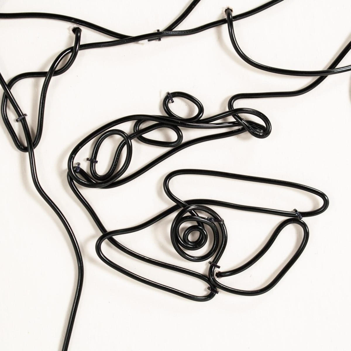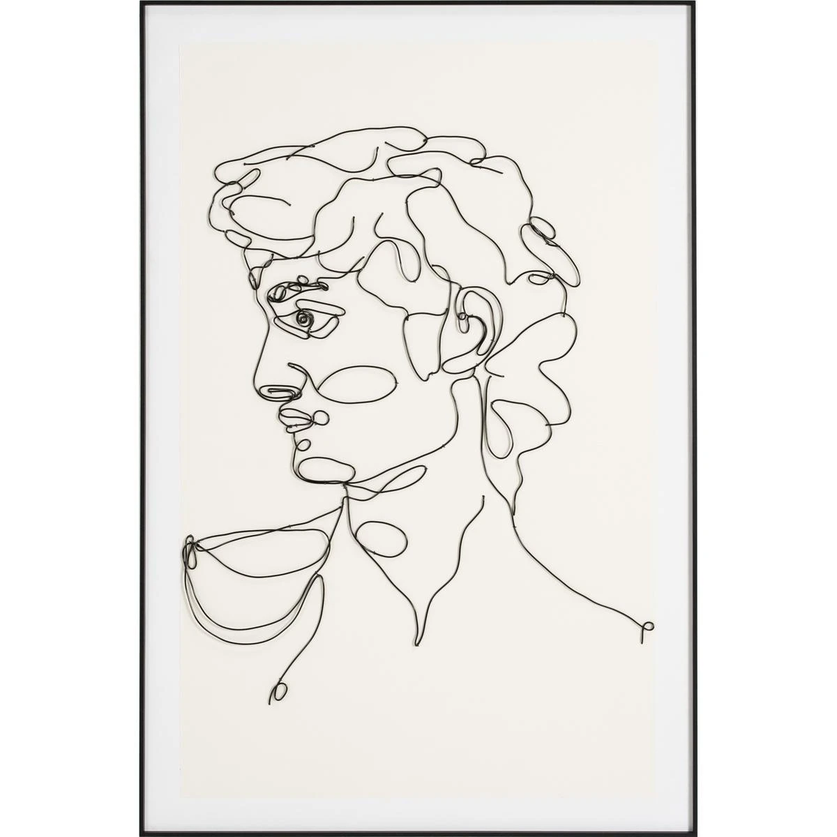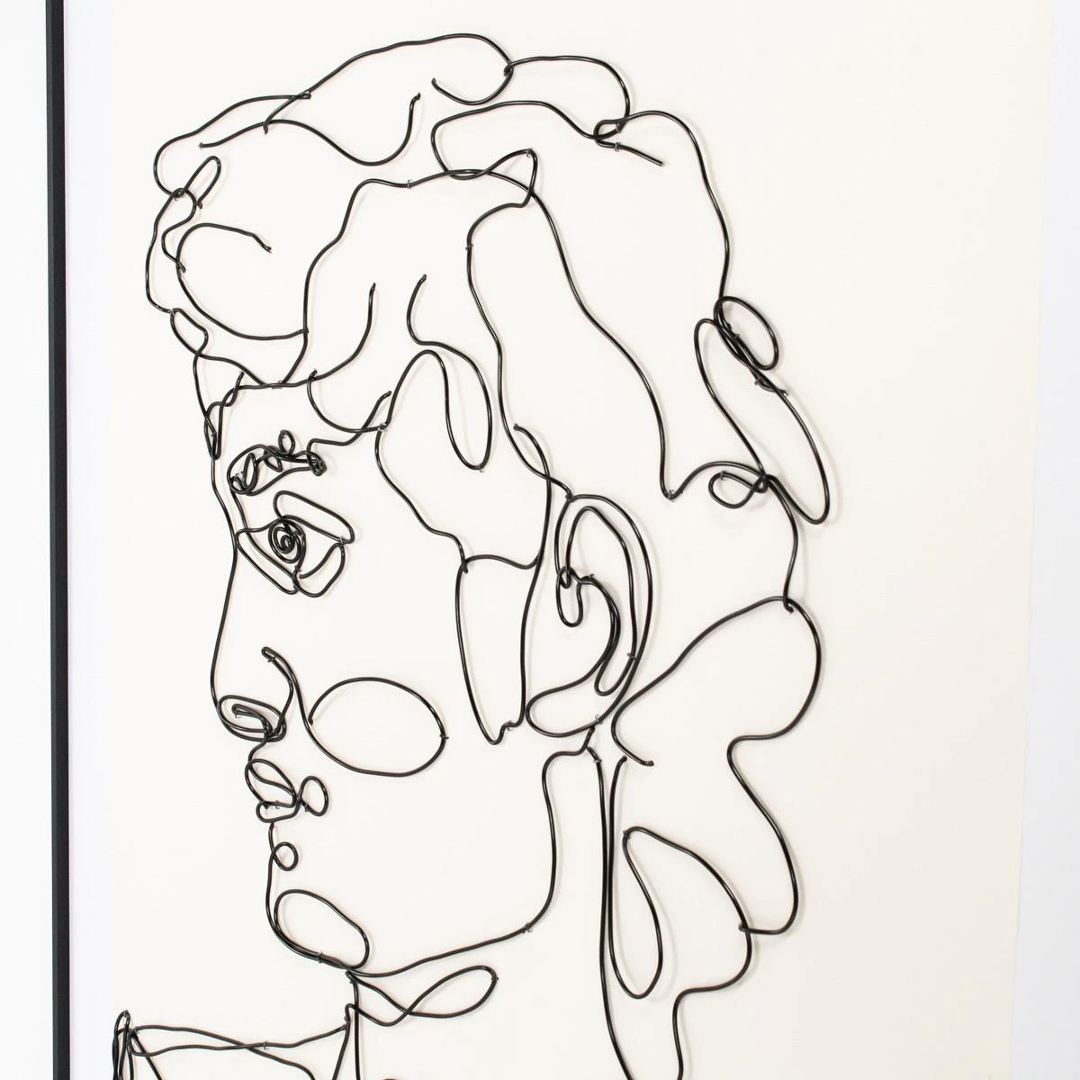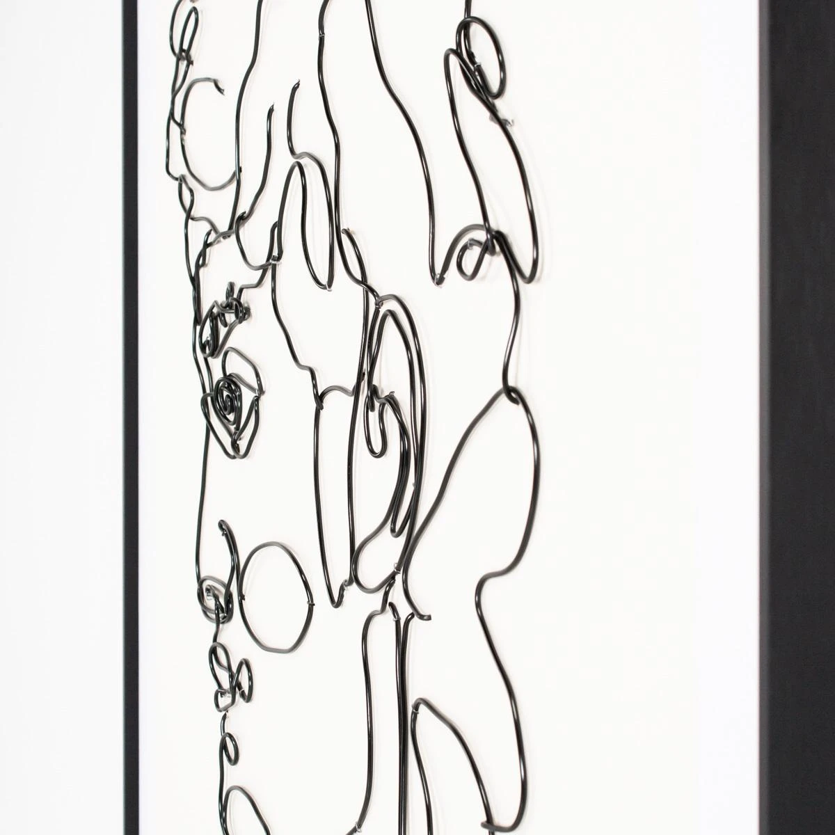 Mixed media artwork by Tat Frederick. Roman wire portrait art pinned to drawing paper and framed in black with a white matte.