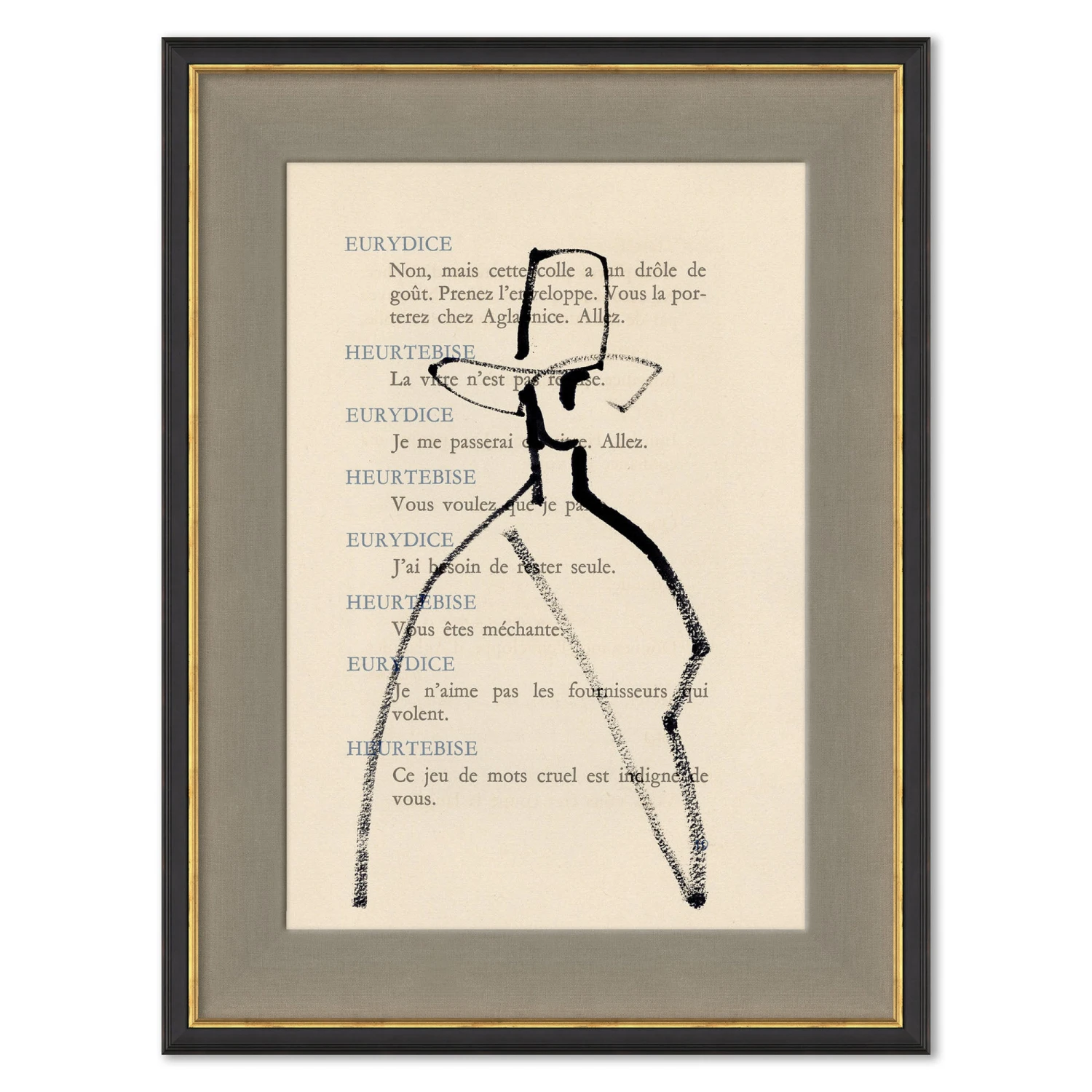 This piece features a portrait by Yuki Osada painted over a page from Jean Cocteau’s play Orphée, known in English as Orpheus.