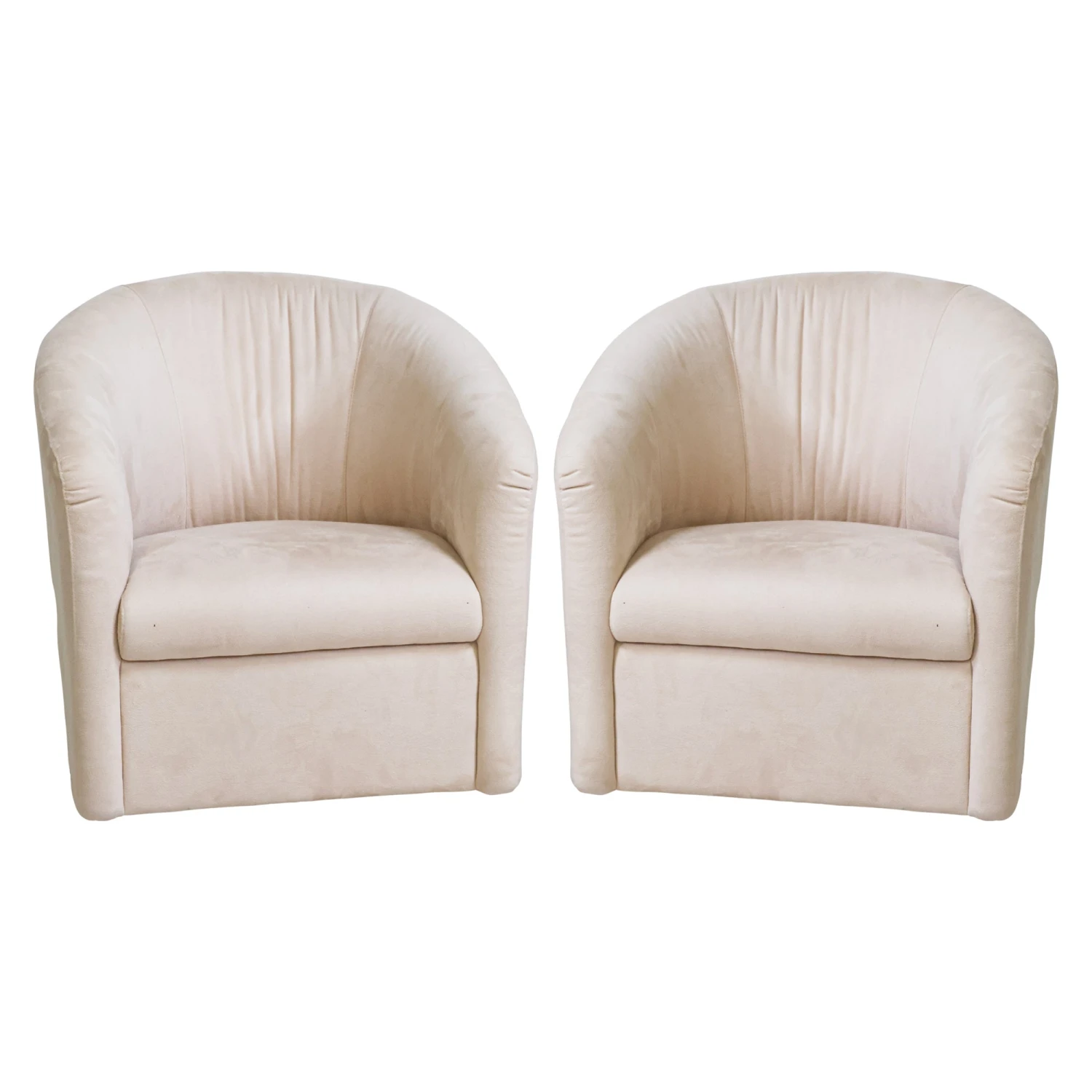 Vintage pair of swivels by furniture manufacturer Natuzzi featuring clean lines, wide chanel backs and subtle ruching. Swivel the night away in vintage style!