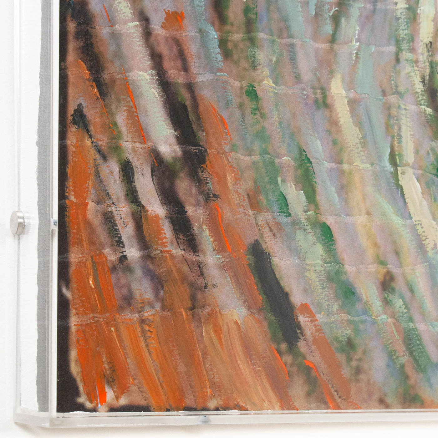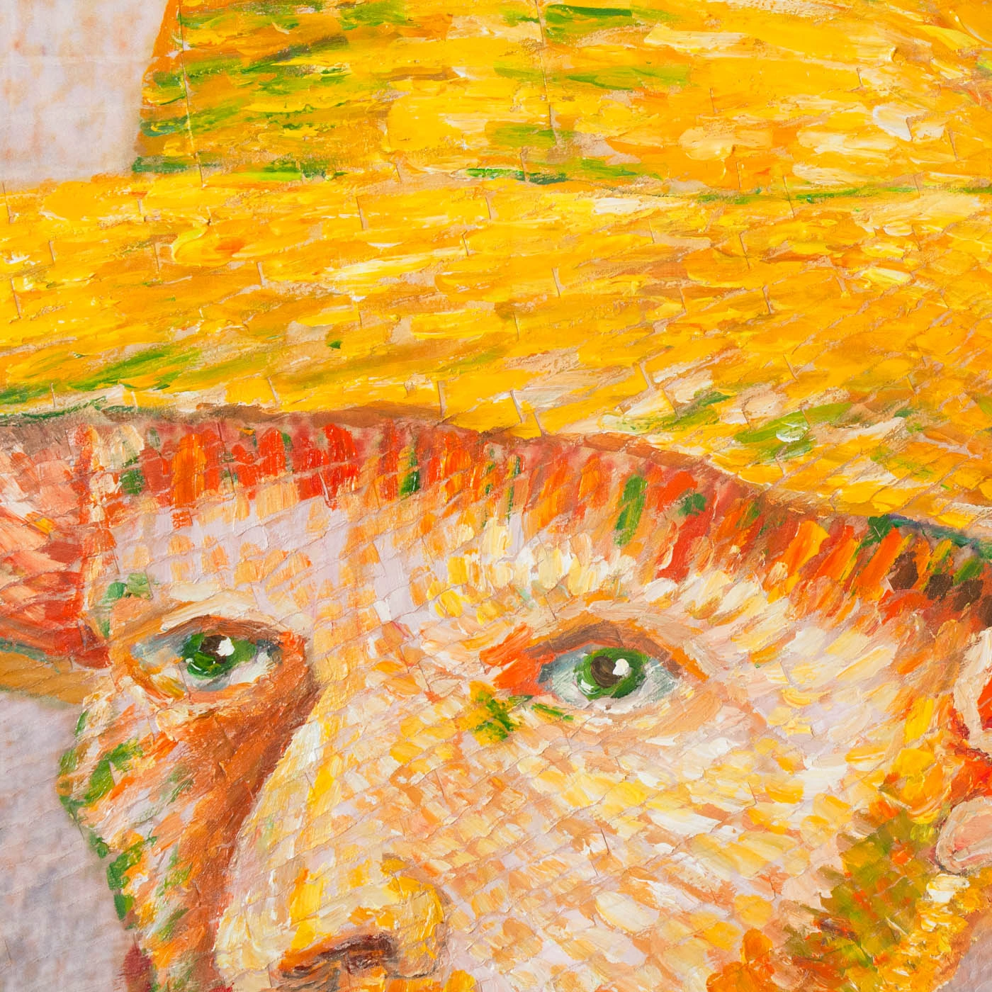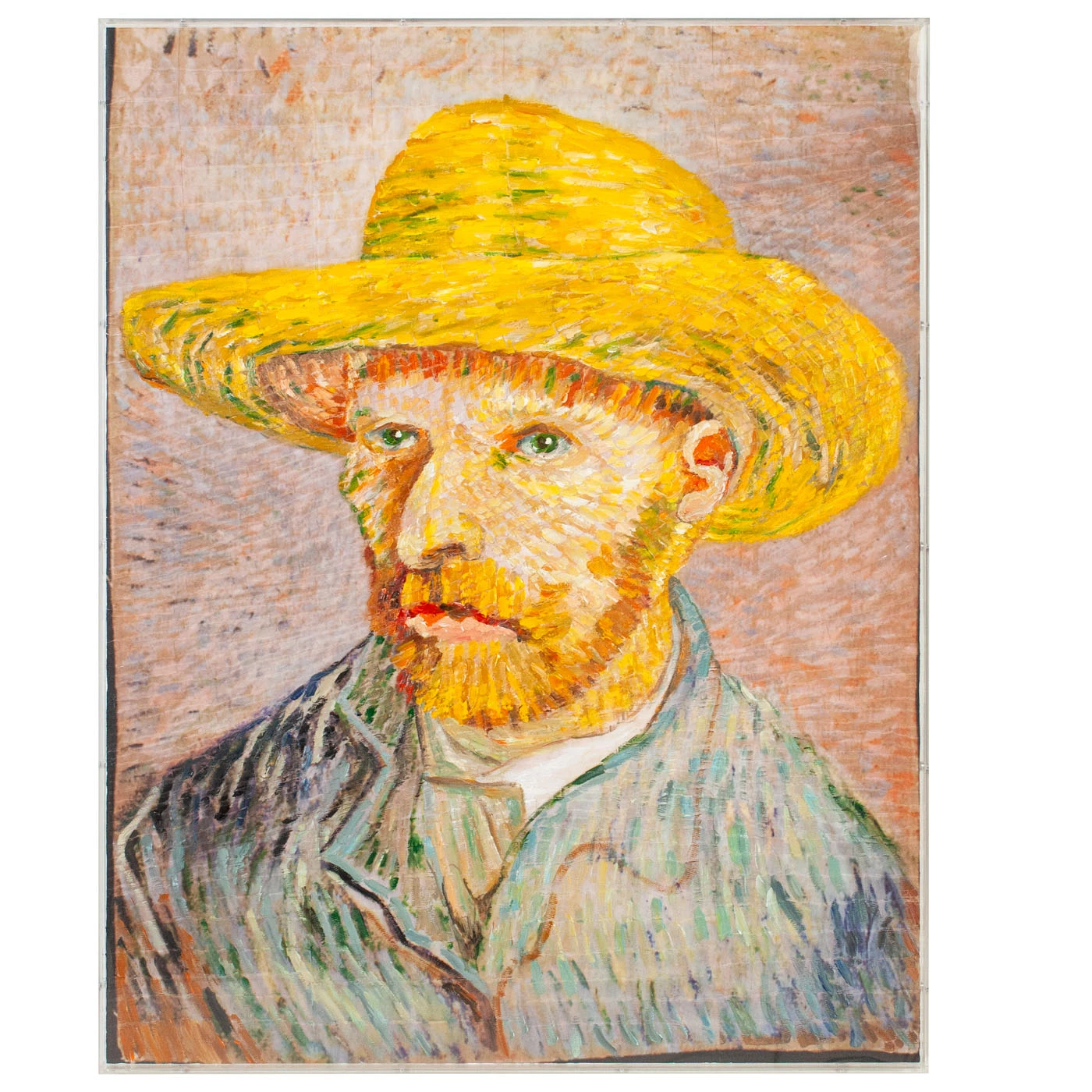 A reimagination from the Tat Frederick studio, “Paper Vince in Straw Hat” isΒ crafted out of colored paper and fixedΒ to a canvas. Framed in an acrylic shadowbox.Β