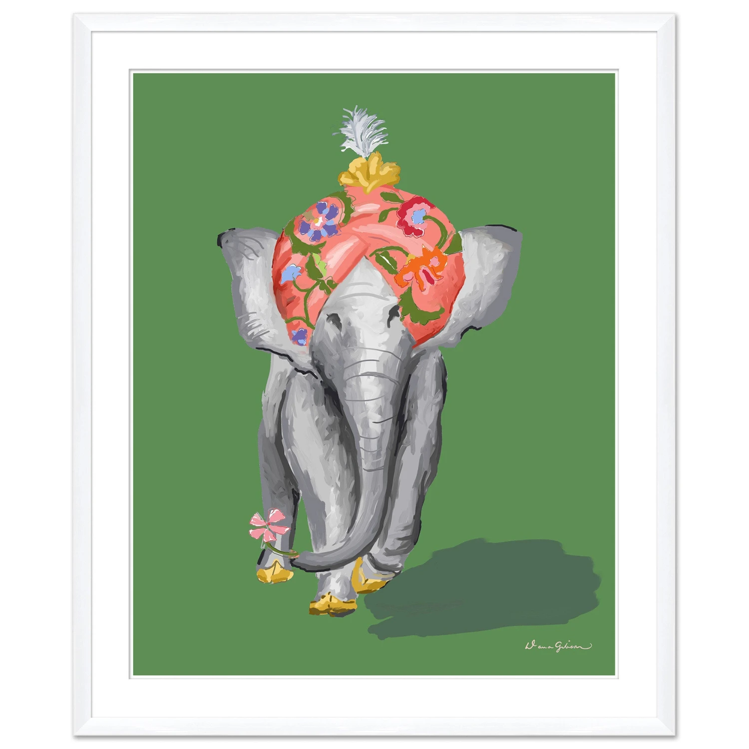 Giclée print of an acrylic painting by Dana Gibson. ‘Procession In Green‘ is printed on archival paper and framed in a white wood frame.
