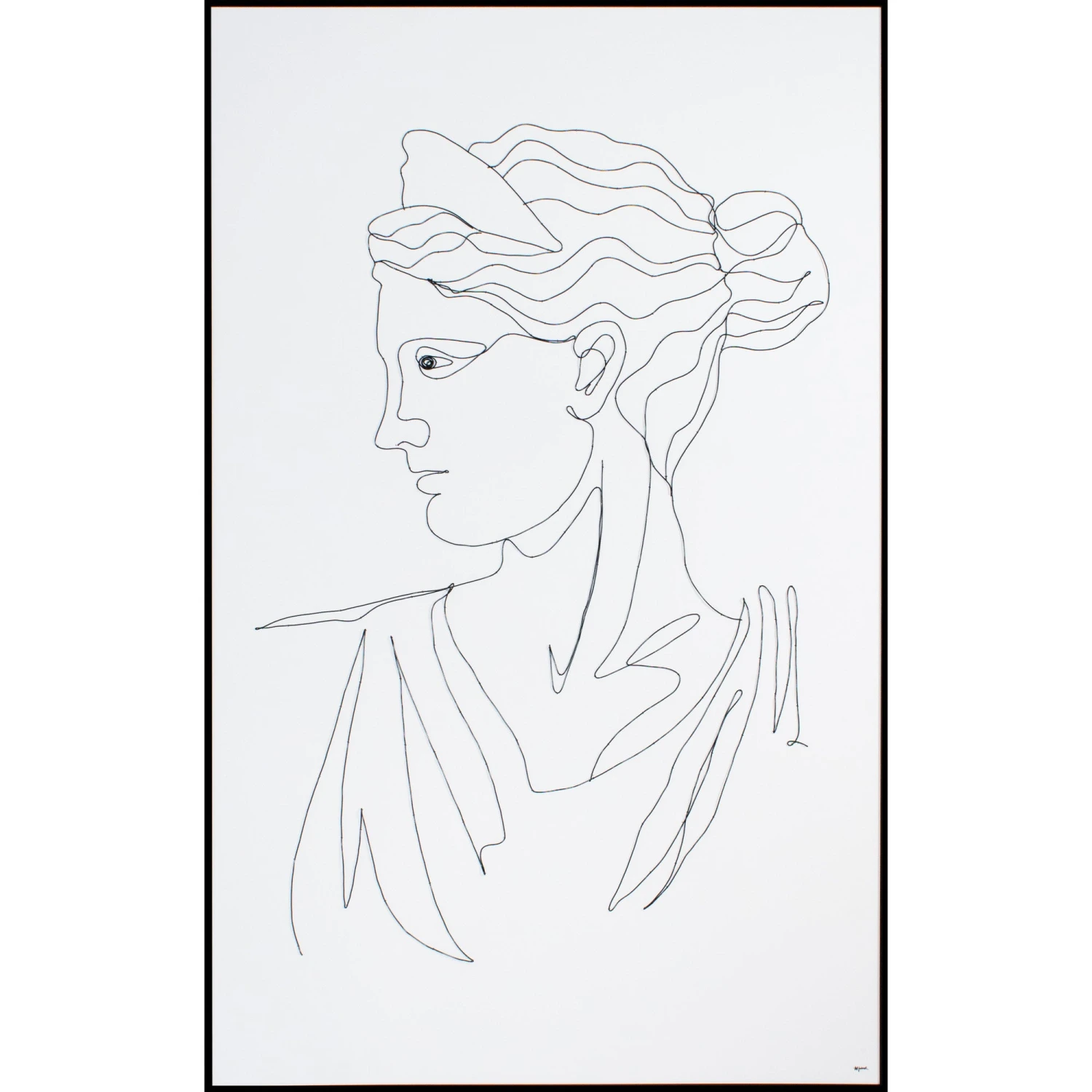 Mixed media wire artwork by Tat Frederick. Roman wire portrait art pinned to drawing paper and framed in black with a white matte.