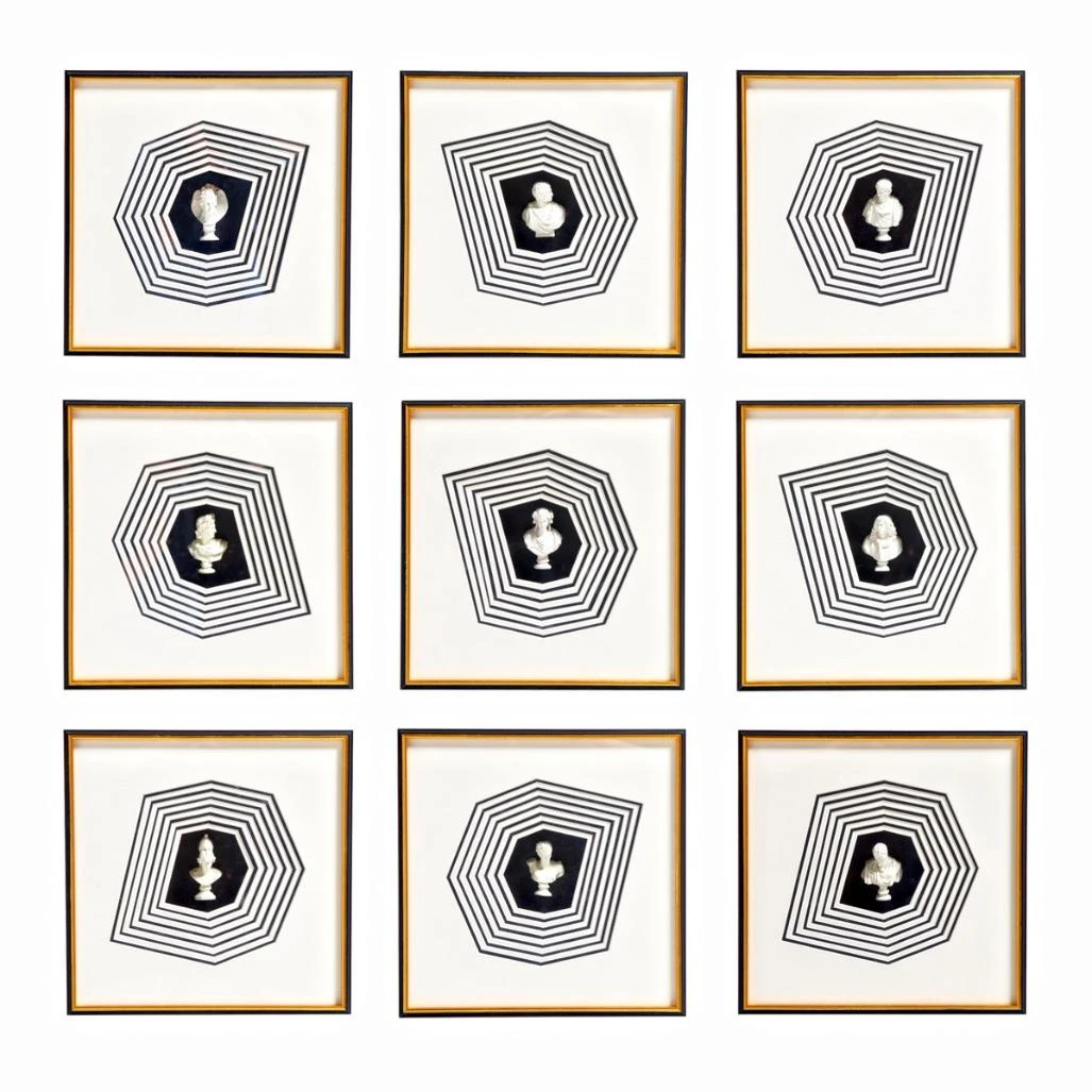 Scout exclusive limited run artwork. Set of 9 framed resin Roman head sculptures. These are head turners (literally)!