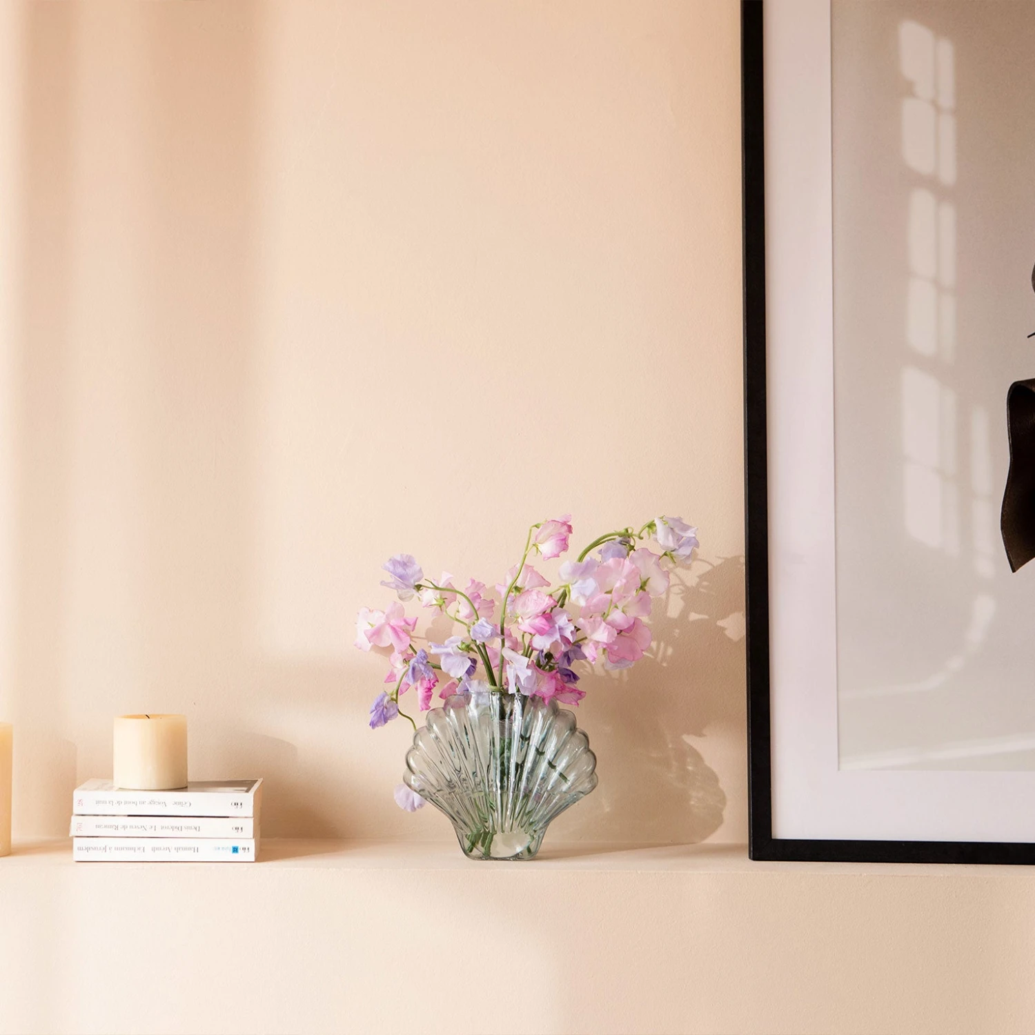 Featuring soft blue curves that form the shape of a seashell, this piece is sure to make your florals pop.