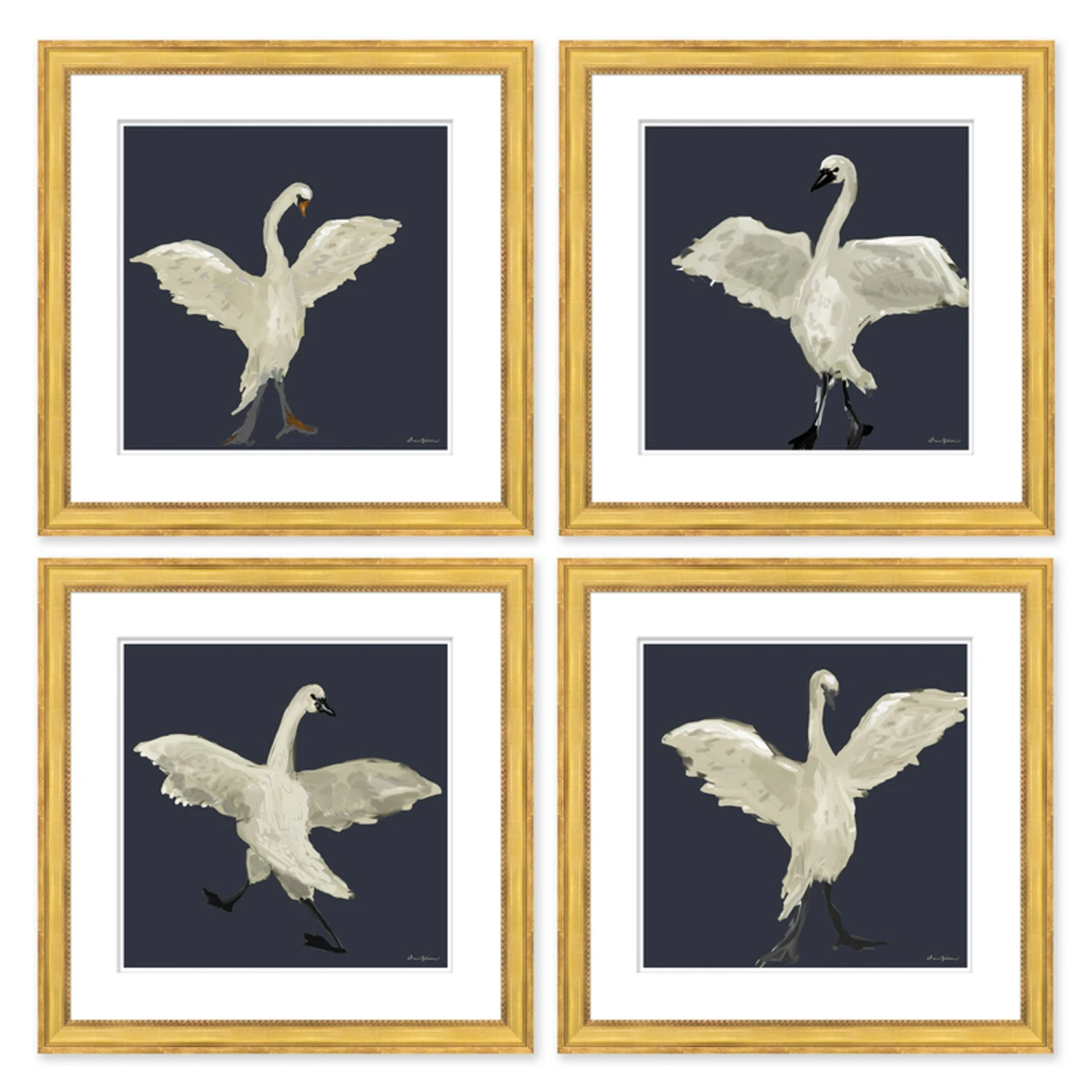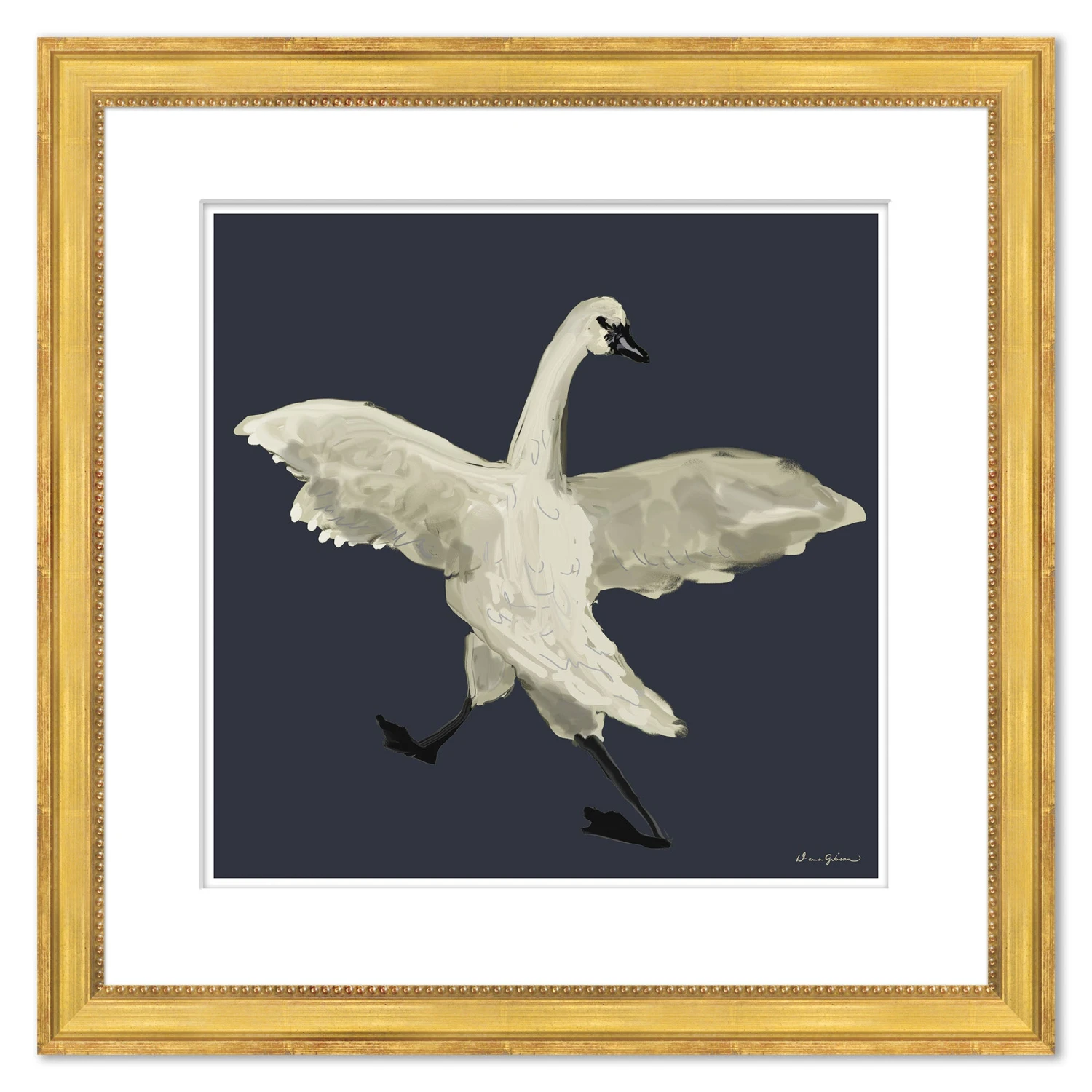Giclée print of an acrylic painting by Dana Gibson. ‘Swan Coy‘ is printed on archival paper and framed in a gold frame.