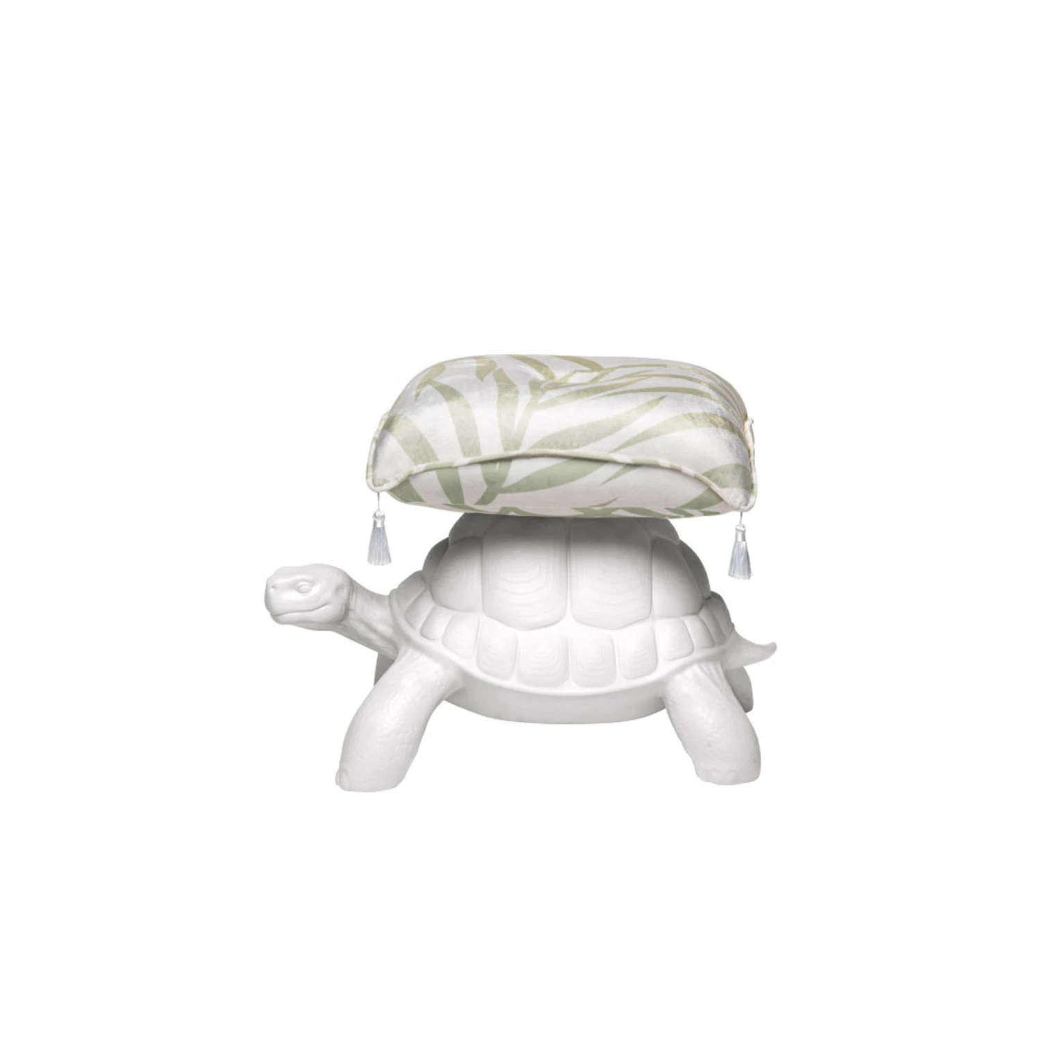 Turtle Carry Pouf, designed by Marcantonio, carries on its carapace a soft cushion that can function as a seat, footrest, or an additional tabletop. For your moments of relaxation!