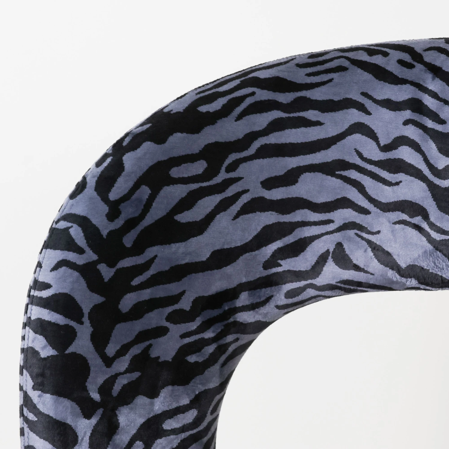 Our Vesper Chair in ink blue tiger stripe fabric draws all eyes. We love the unique curves of this open back design paired with tonal stripes. Set the scene with this one!