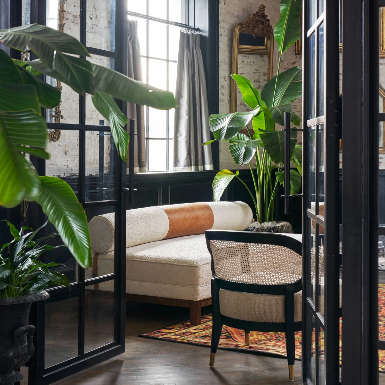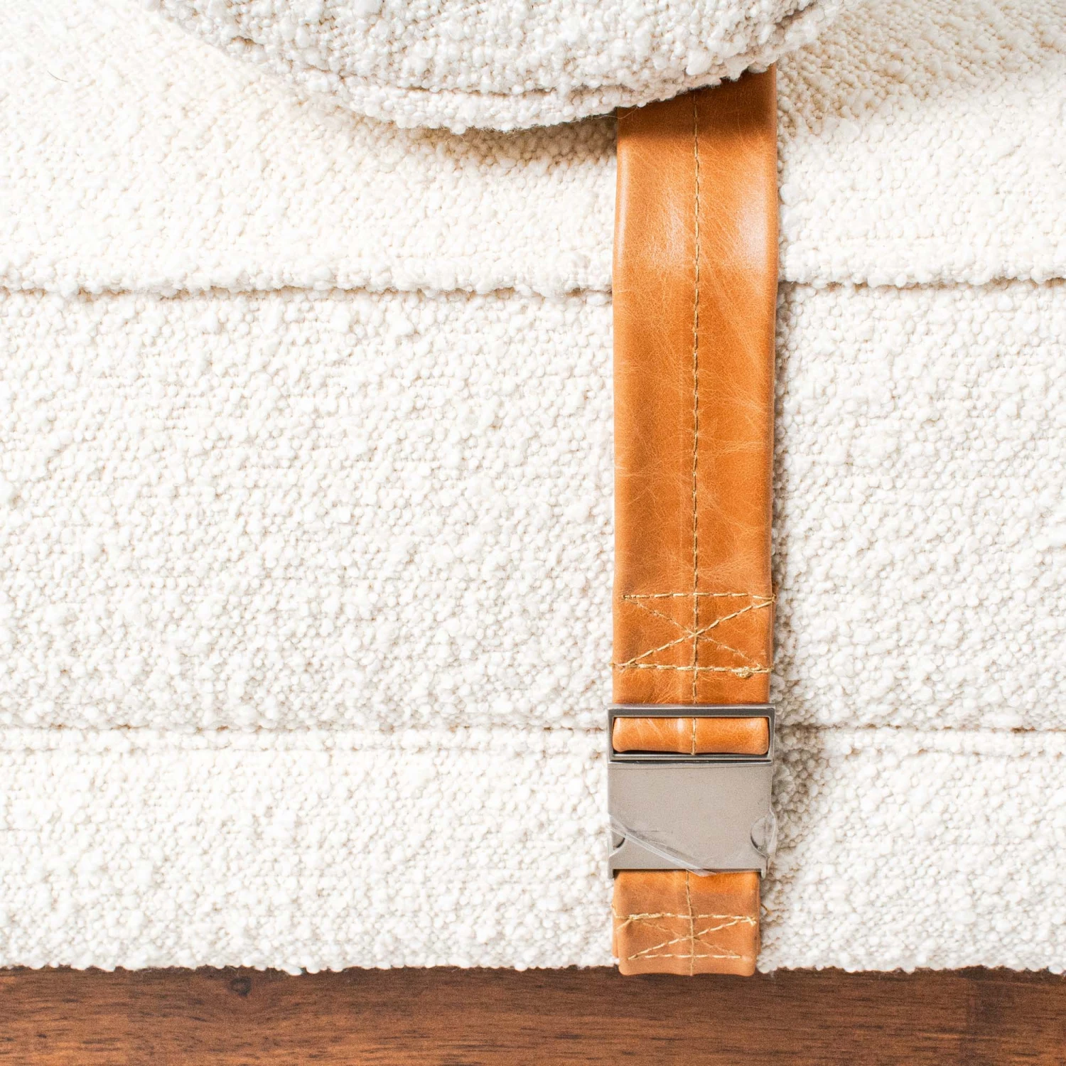 Ourย Wade Chaise Lounge features a medley of ivory boucle and tobacco leather. Aย wooden base provides a touch of organic warmth whileย an adjustable lumbar pillow provides support so you can lounge with the best of ’em.